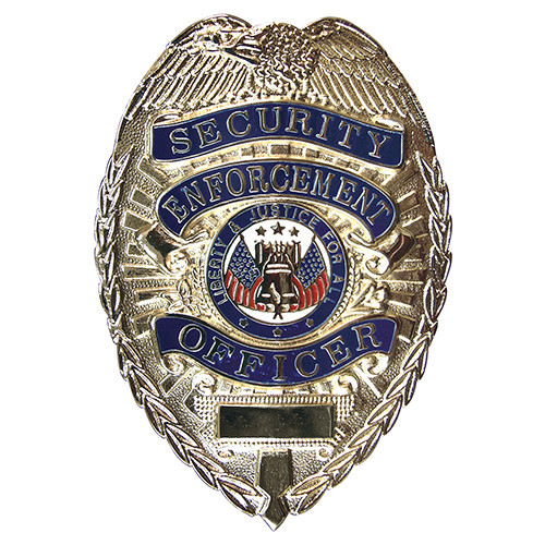 Insigne métallique raffiné portant l'inscription « Security Enforcement Officer ». Possibilité d'ajouter le numéro de matricule dans la partie inférieure de l'insigne.