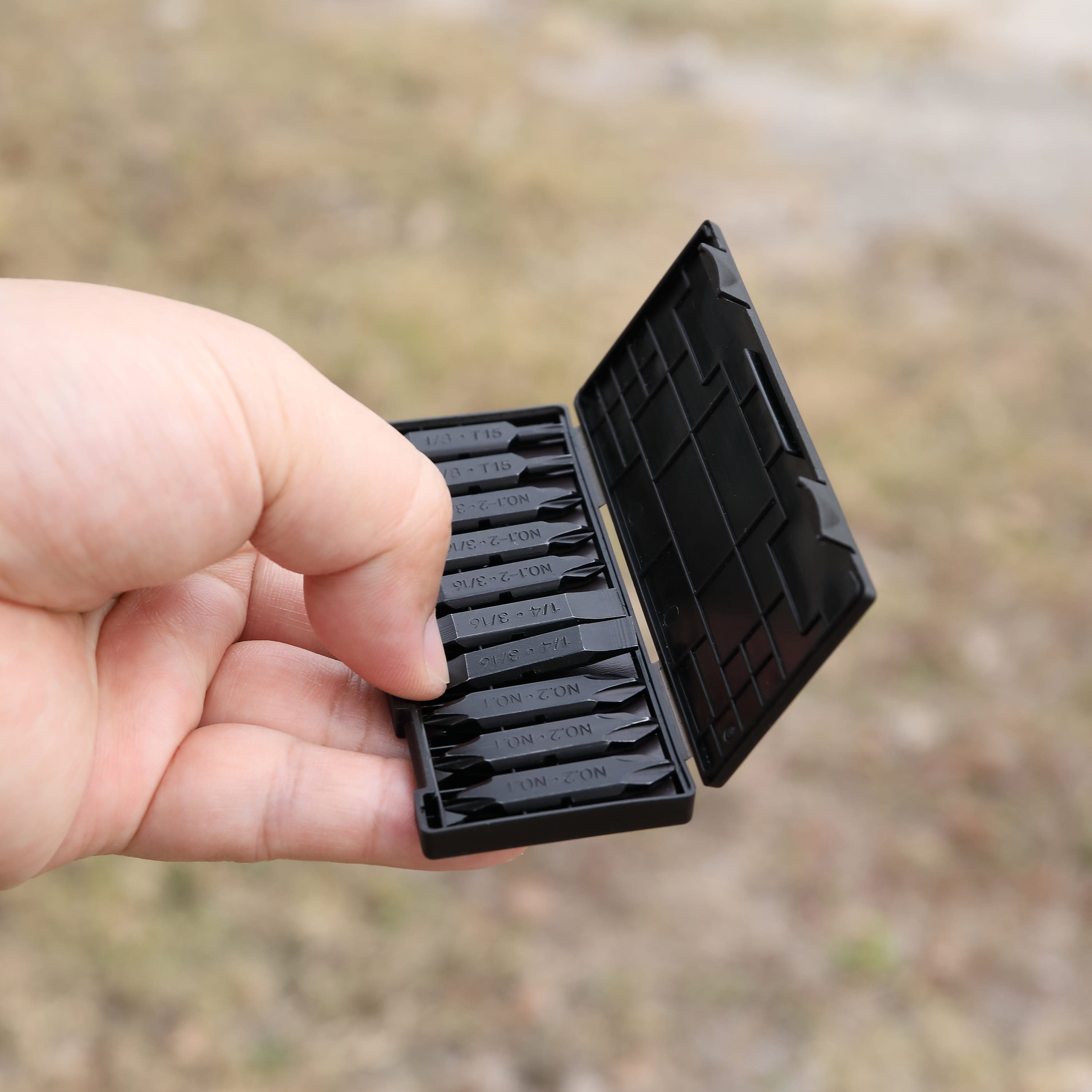 Jeu complémentaire d'embouts plats destinés aux outils POCKET TOOL et FLAGSHIP CAPTAIN. Les embouts sont fabriqués en acier au carbone S2 résistant aux chocs, qui se caractérise par une résistance et une ténacité exceptionnelles. Un avantage appréciable est la compatibilité des embouts avec les outils multifonctions tels que LEATHERMAN Surge, Wave+, Signal, etc. Les embouts sont livrés avec un étui compact en polypropylène.