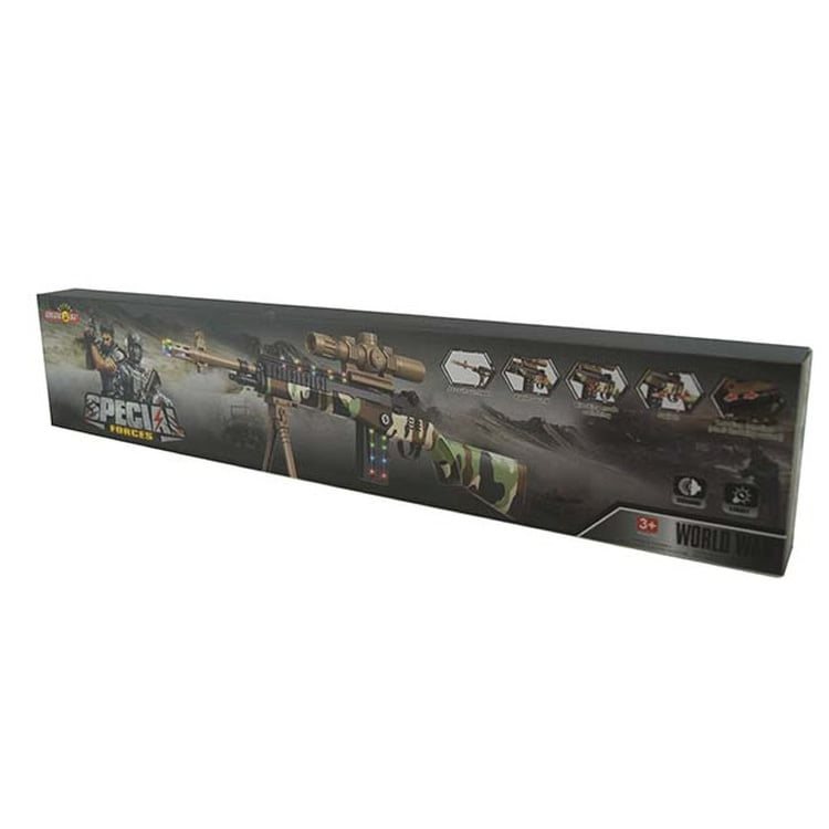 Jouet en plastique pour enfants. Ne tire pas de balles, émet des effets sonores. Longueur totale 62 cm. Convient aux enfants à partir de 3 ans. Plus d'informations