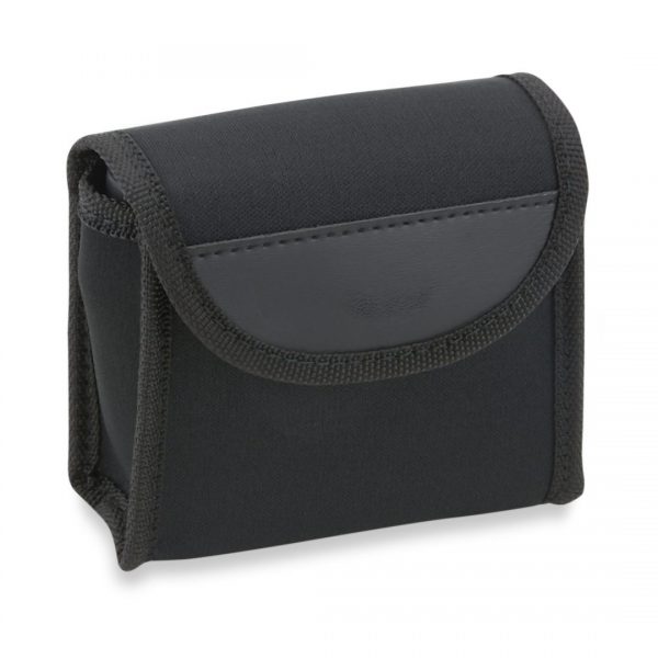 L'emballage comprend un étui noir pratique, une dragonne, un chiffon en microfibre pour nettoyer les lentilles et un cache en plastique pour protéger les lentilles. L'étui est muni d'une fermeture velcro et peut être accroché à une ceinture d'une largeur d'environ 5,5 cm. Agrandissement : 8x