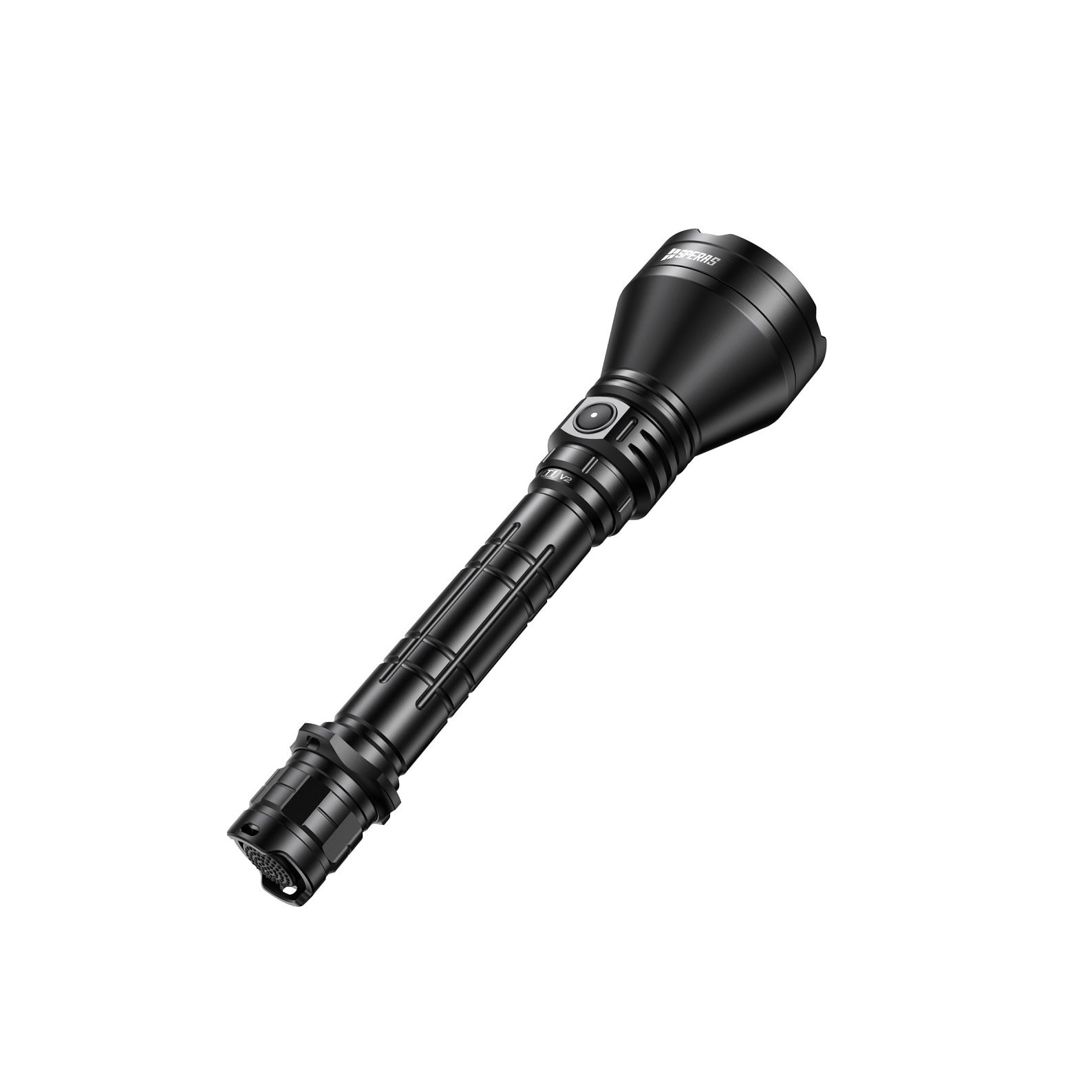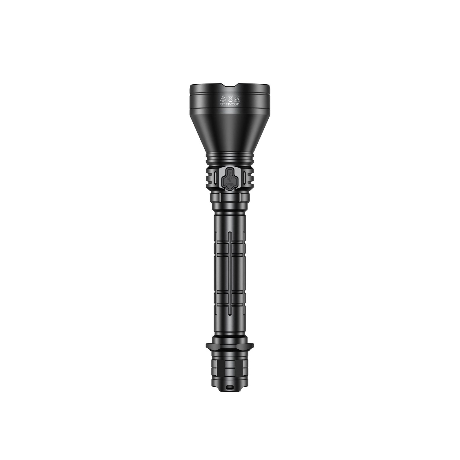 Lampe de chasse puissante utilisant des diodes LED S50 de haute qualité pour atteindre une puissance maximale de 1400 lumens avec une portée de 1400 mètres. Le corps de la lampe est fabriqué en alliage d'aluminium aéronautique résistant avec une surface de type III protégeant contre les rayures et un indice de protection IP68 qui garantit la résistance à l'eau et à la poussière. La tête de la lampe est équipée de protubérances qui protègent la lentille et le réflecteur contre les dommages. La lampe est équipée d'un bouton de commande inférieur pour changer de mode. Ce bouton mesure 18 mm de large et est recouvert de caoutchouc afin de pouvoir être facilement actionné même avec des gants. Six modes d'éclairage sont disponibles.
