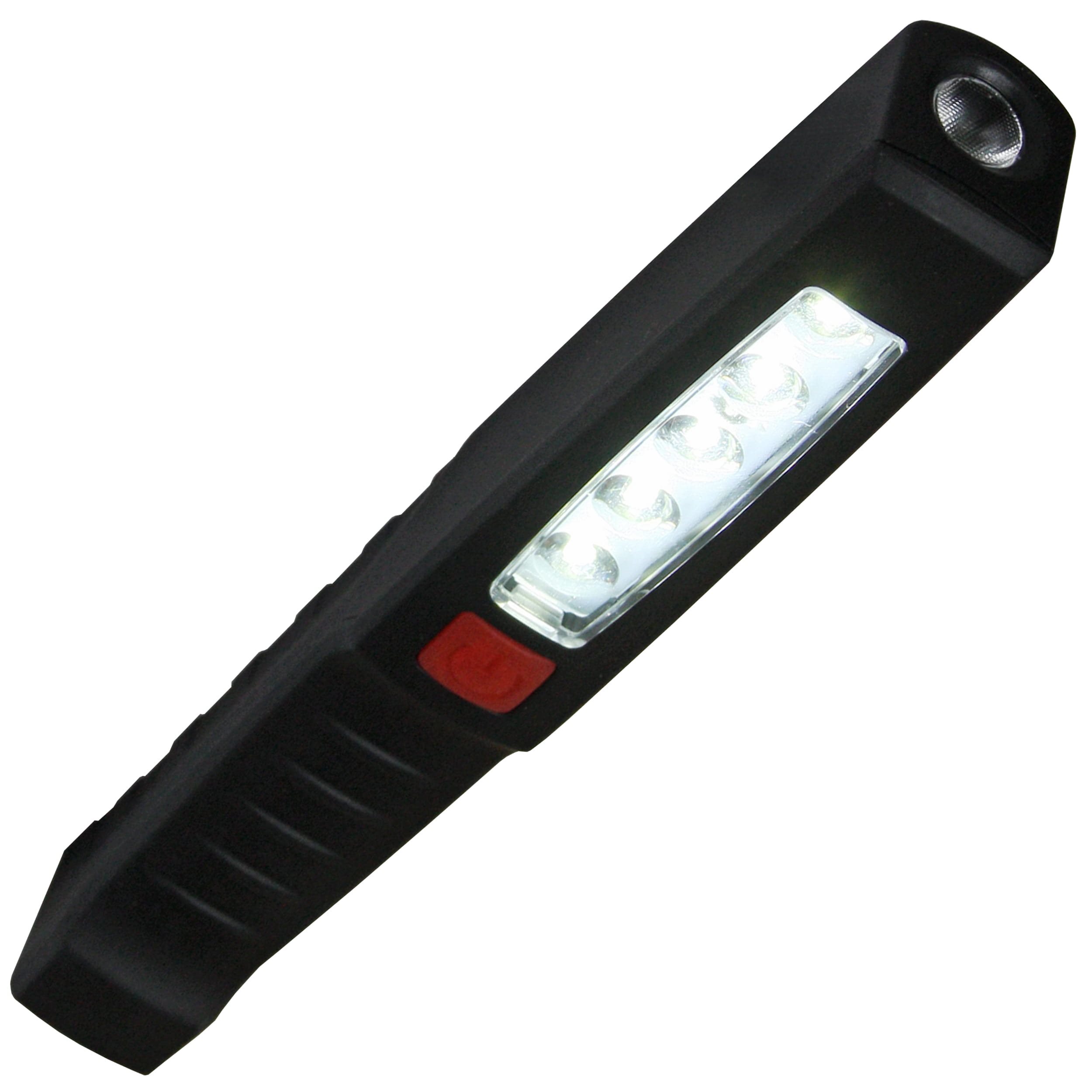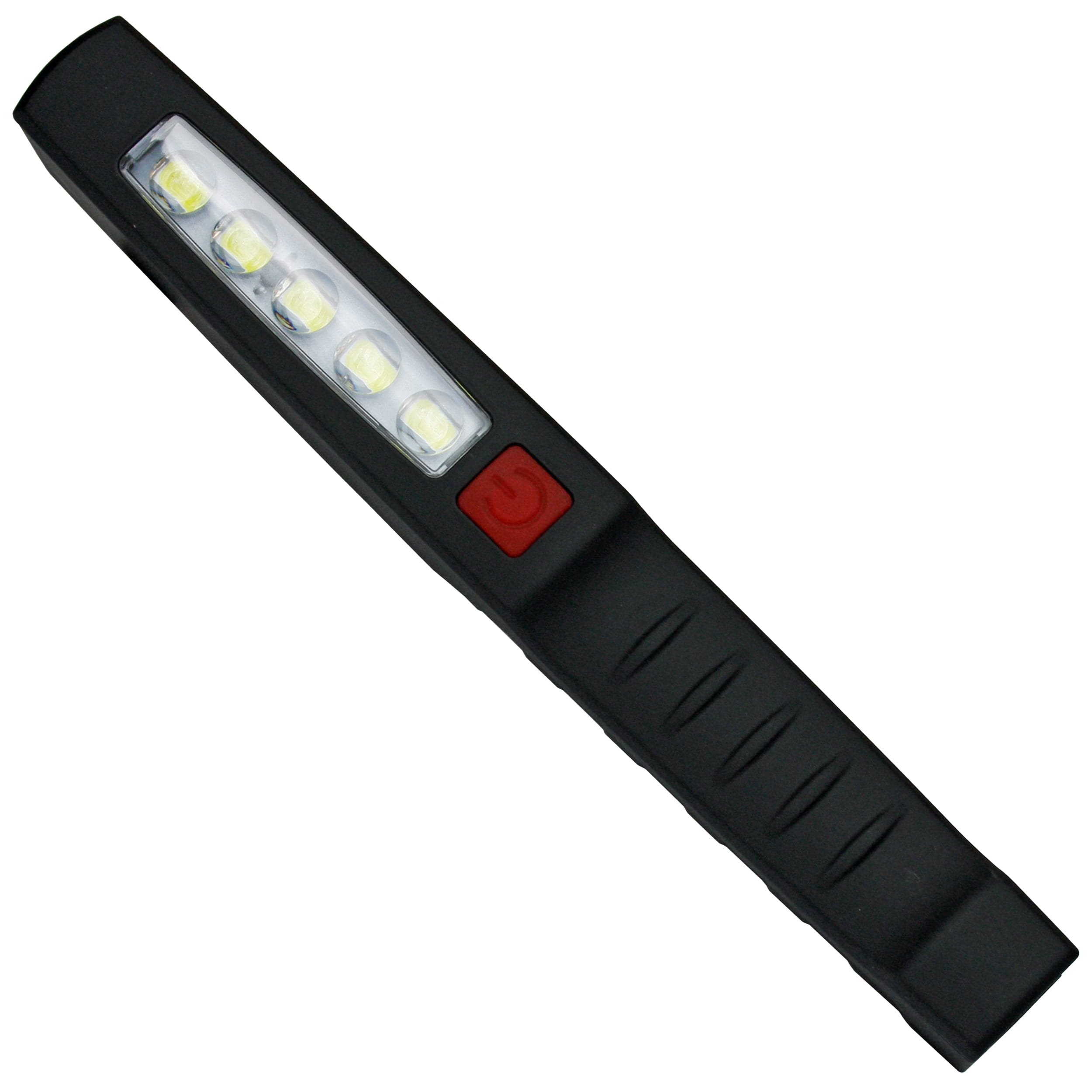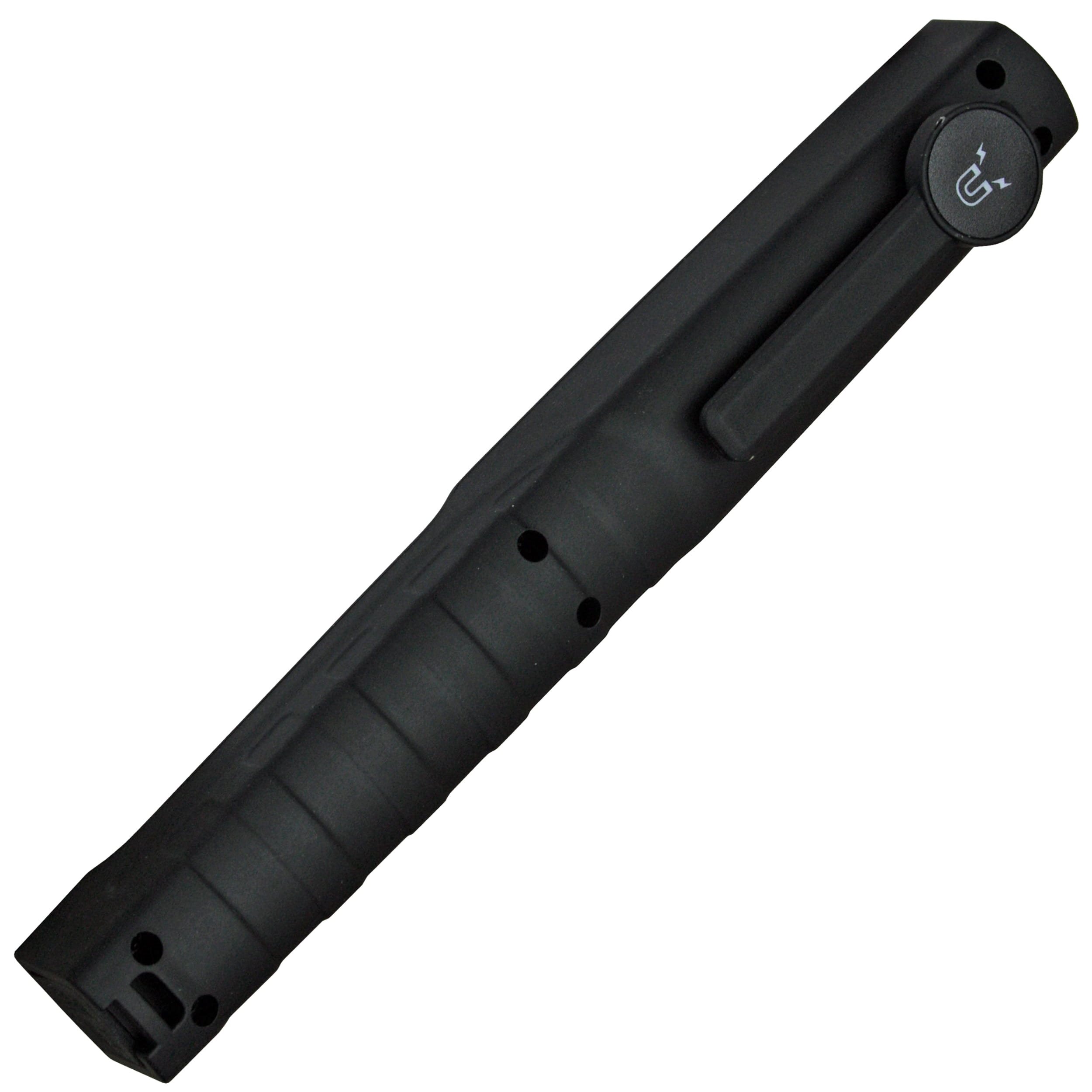 Lampe de travail rechargeable pratique équipée d'un aimant puissant permettant de la fixer sur des surfaces métalliques. Pour atteindre une puissance maximale de 150 lumens, la lampe utilise au total cinq lampes LED verticales et une lampe LED CREE à l'avant de la lampe. L'alimentation est assurée par une batterie Li-ion offrant une autonomie d'environ 4 heures. Le corps est fabriqué en plastique ABS résistant et comporte un clip simple pour la suspendre et un bouton caoutchouté pour l'allumer et l'éteindre. Livrée avec un chargeur et un adaptateur pour voiture.