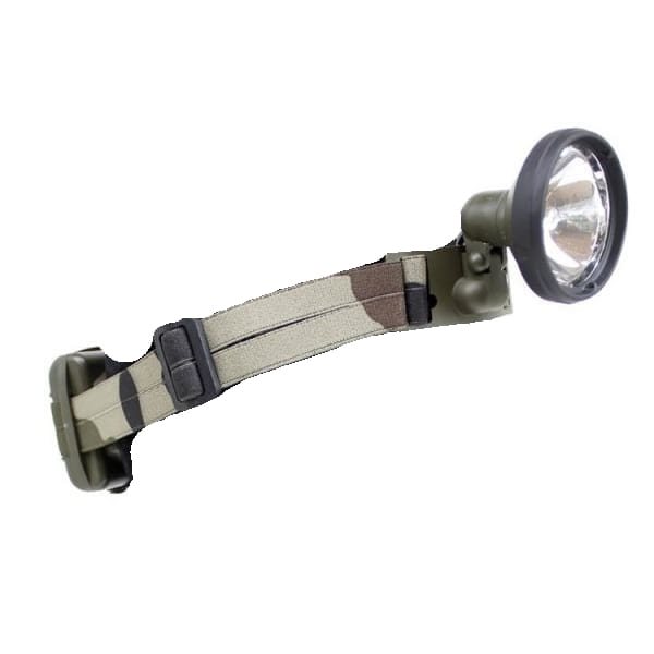 Lampe originale de l'armée française. Peut être portée comme lampe frontale ou fixée sur un casque.