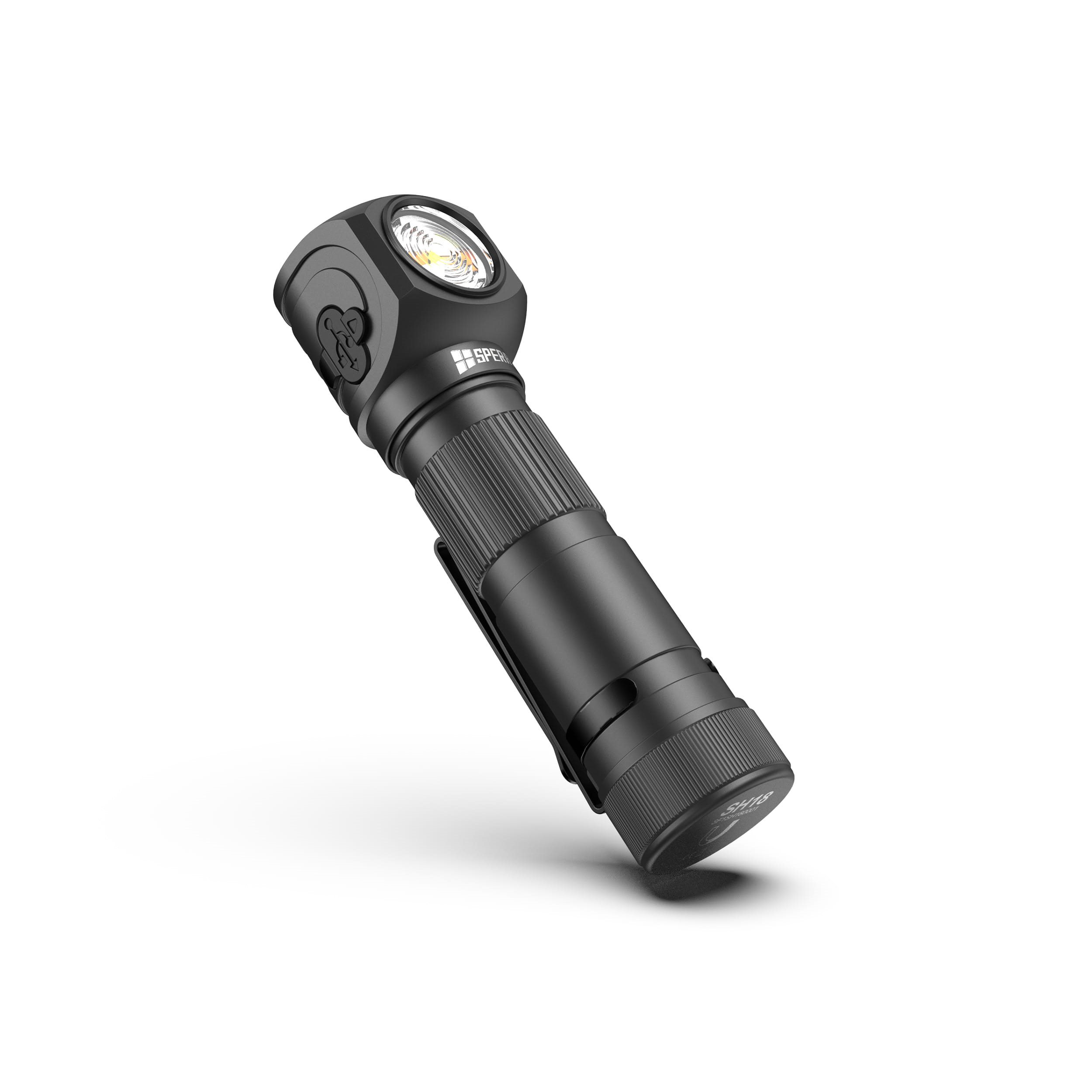 Lampe frontale compacte à haute puissance, excellente luminosité et lumière rouge pour préserver la vision nocturne. Le corps de la lampe est résistant à la poussière et à l'eau selon la norme IP68. Il est fabriqué en alliage d'aluminium aéronautique 6061 avec un revêtement durci qui limite les risques de rayures accidentelles. La tête de la lampe est équipée d'un interrupteur de commande et d'un port USB-C de recharge. L'extrémité de la lampe est équipée d'un aimant permettant de la fixer sur des surfaces métalliques. L'alimentation est assurée par une batterie lithium rechargeable de type 18650 fournie, ou par deux piles CR123 (non fournies). La lampe utilise une LED Luminus SFT40.2 de haute qualité, complétée par des lentilles de Fresnel. La lampe frontale dispose d'une lumière blanche et rouge, ainsi que d'une fonction SOS et d'un stroboscope. Le bandeau de la lampe est élastique et permet d'incliner la lampe à volonté.