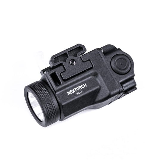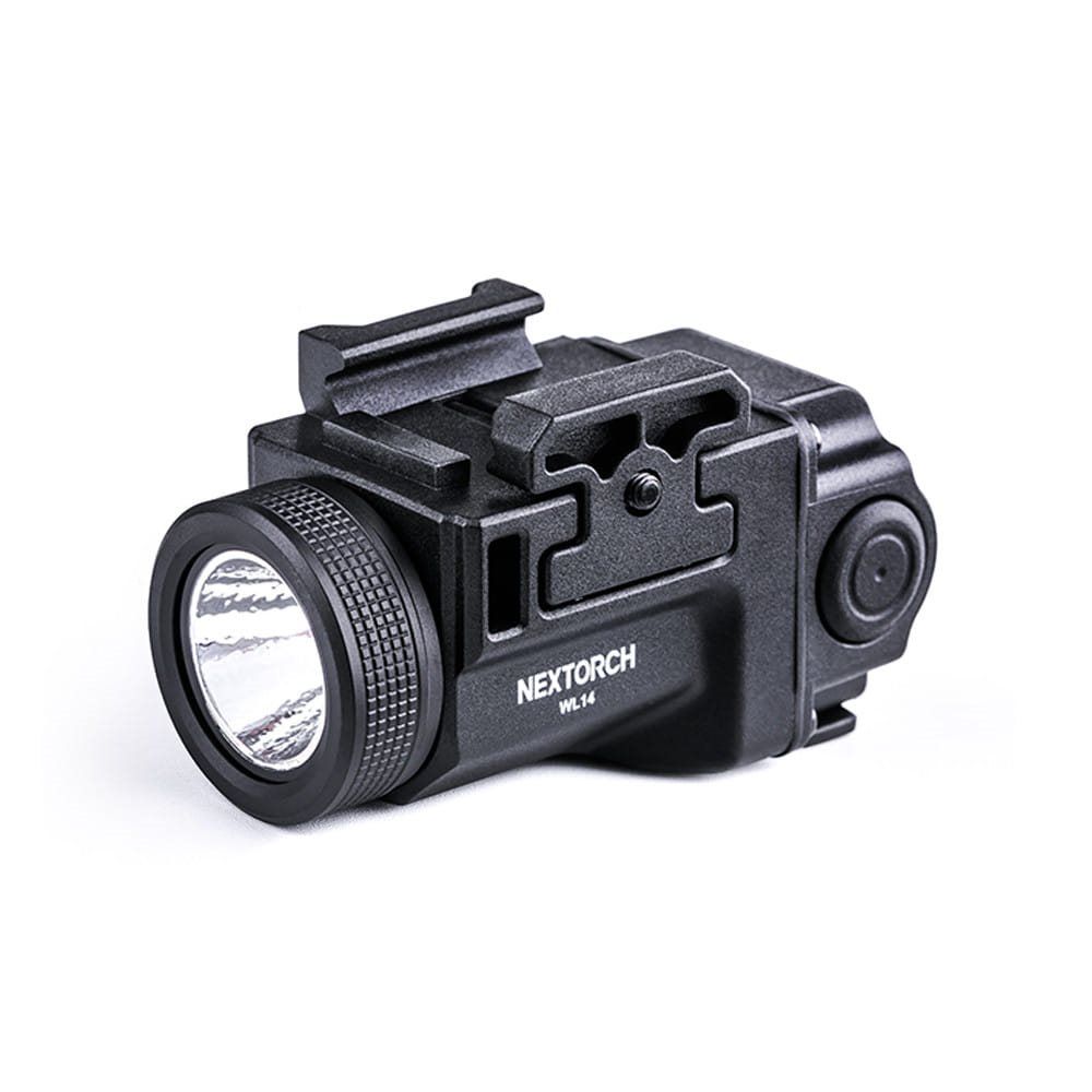 La WL14 est une lampe tactique robuste et facile à utiliser, conçue pour être montée sur un pistolet grâce à sa fixation sur rail Picatinny. Un connecteur USB-C intégré permet de recharger la batterie interne. La lampe dispose de deux interrupteurs identiques situés à gauche et à droite pour un accès facile et rapide aux différents modes.