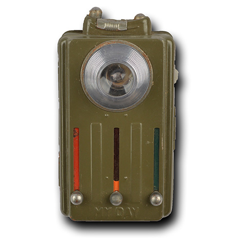 Lampe torche tchèque MY DAY bien connue. Trois couleurs. Alimentation par deux piles 1,5 V. Sangle pour fixation à la ceinture. Interrupteur avec option morse.