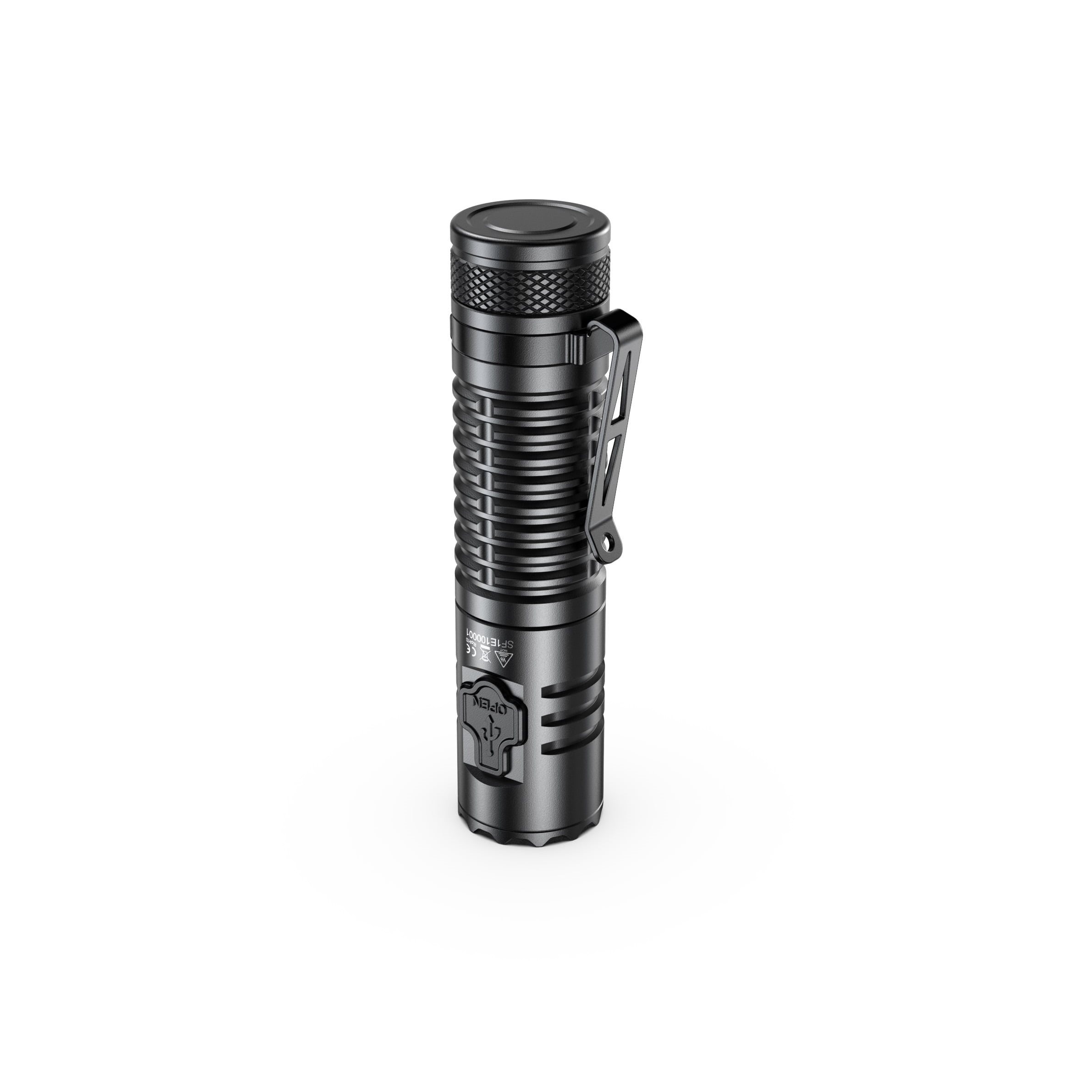 Lampe multifonction compacte conçue pour un usage quotidien. Elle utilise des ampoules LED Luminus SST40 de haute qualité associées à une lentille TIR pour une fonctionnalité optimale et une puissance maximale de 1 300 lumens avec une portée de 175 mètres. L'alimentation est assurée par une batterie d'une capacité de 3100 mAh, que vous pouvez recharger très facilement à l'aide du câble USB C fourni. Le corps de la lampe est fabriqué en aluminium léger mais résistant et offre un indice de protection IP68. La lampe propose au total six modes d'éclairage, entre lesquels vous pouvez facilement basculer à l'aide d'un bouton latéral. Le bouton est également équipé d'un indicateur de niveau de batterie. Grâce à son clip métallique, la lampe peut être rapidement accrochée à votre équipement.