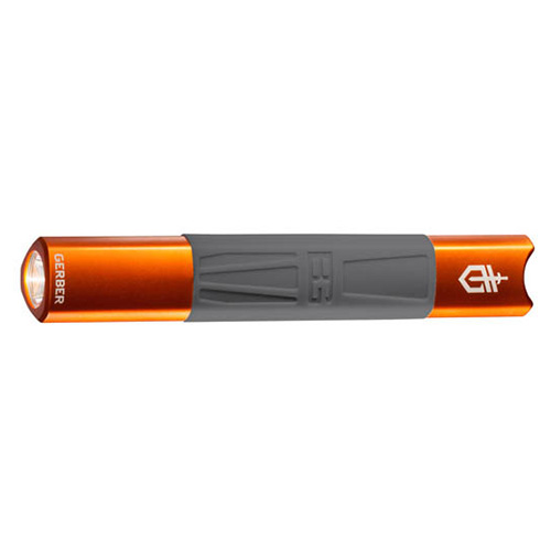 Lampe étanche avec 3 niveaux d'intensité lumineuse (jusqu'à 140 lumens). Son design raffiné empêche la lampe de rouler sur les surfaces inégales. Longueur : 16 cm. Ampoule : LED CREE XPG-R5. Autonomie jusqu'à 17 heures au niveau d'intensité le plus faible. Alimentation par 2 piles AA (fournies).