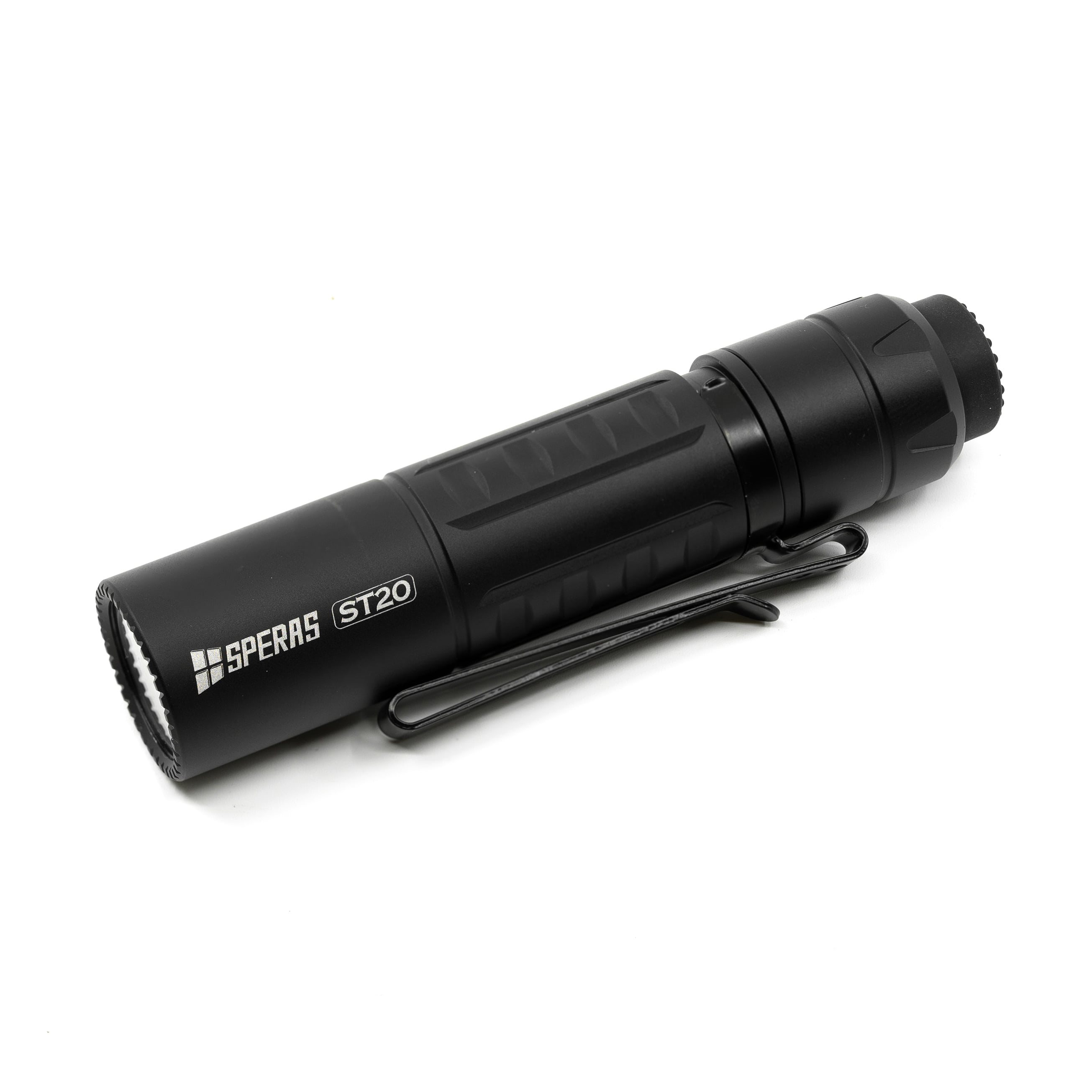 Lampe rechargeable de police inspirée du modèle E21, dont elle emprunte l'interrupteur tactique en caoutchouc qui, lorsqu'il est enfoncé sur le côté, permet de passer directement en mode stroboscopique. Ce type d'interrupteur présente l'avantage d'être facile à utiliser, même avec des gants de tir ou d'hiver. En appuyant sur le bouton, il est possible de basculer entre quatre modes courants (turbo, élevé, moyen, faible), la lampe utilisant des diodes LED Luminus SST40 10A de qualité supérieure pour atteindre une puissance maximale de 1 300 lumens avec une portée de 175 mètres. Le corps de la lampe est fabriqué en alliage d'aluminium aéronautique 6061 allégé avec un indice de protection IP68. Le corps est équipé d'un clip métallique pratique pour une fixation facile à l'équipement.