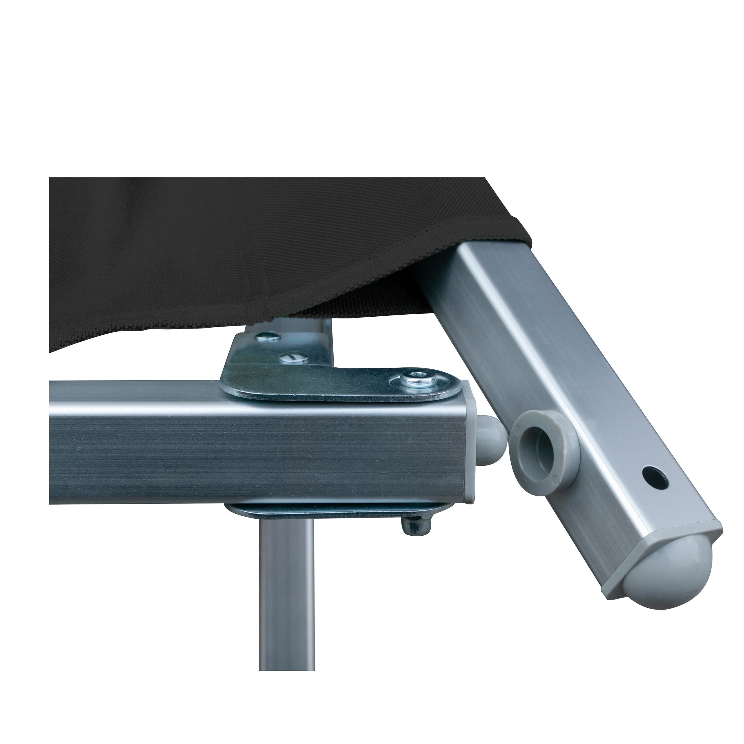 Revêtement de la chaise longue : 100 % polyester 600D possibilité de tendre davantage le revêtement à l'aide d'anneaux d'écartement sur les barres transversales d'écartement