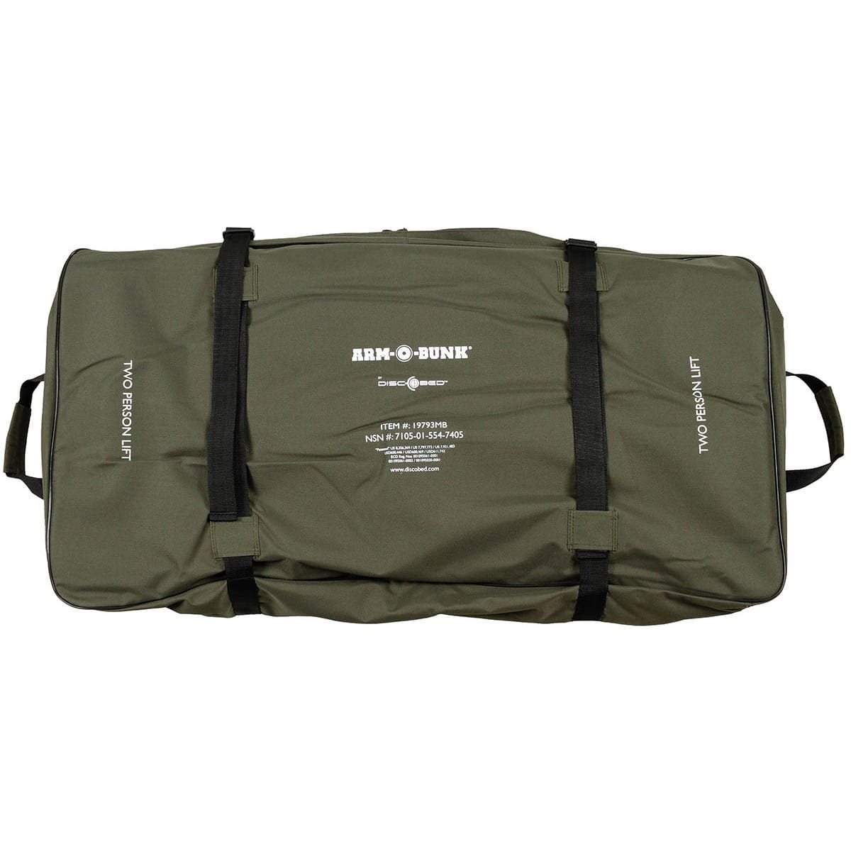 Lit superposé pliant renforcé ARM-O-BUNK de la marque DISC-O-BED, conception unique brevetée, particulièrement adapté à un usage militaire. Fabriqué selon les spécifications du ministère américain de la Défense.
