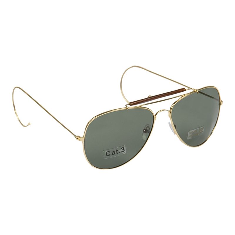 Lunettes de soleil Air Force. Verres teintés en vert. Monture dorée flexible. Forme classique en goutte. Avec étui. Plus d'informations