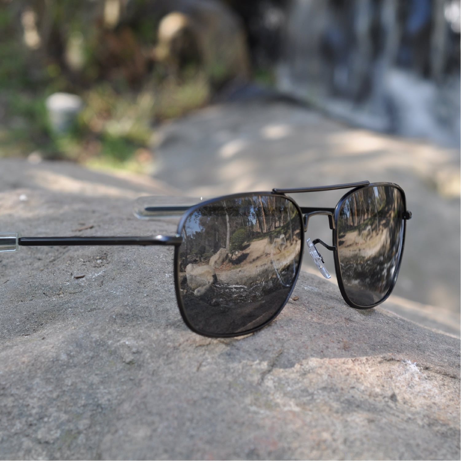 Lunettes de soleil polarisées avec verres fumés. Monture métallique mate, branches flexibles, pont confortable. Protection UV400. L'emballage comprend un étui en cuir noir avec l'inscription Humvee® et une fermeture velcro. Plus d'informations