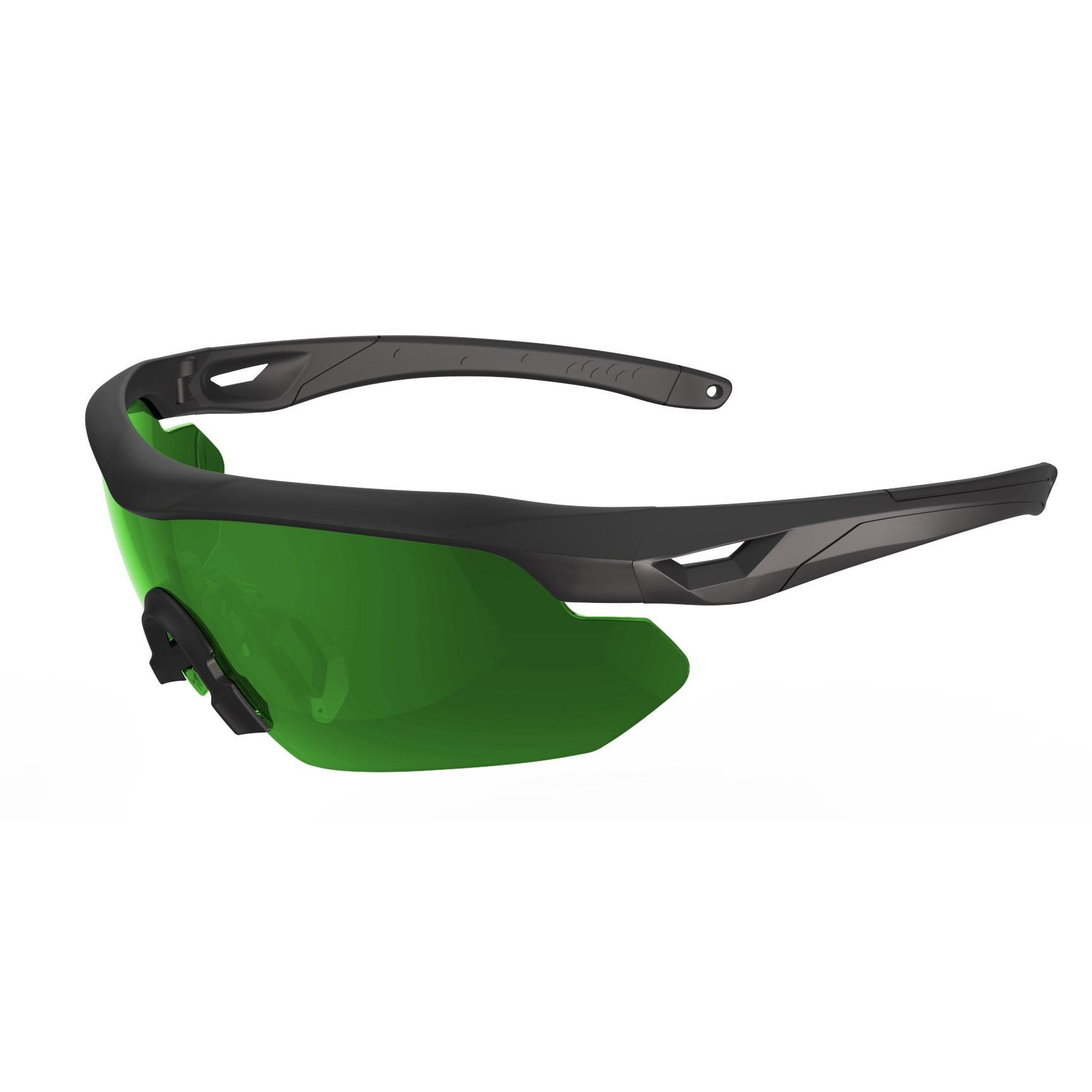 Lunettes de protection professionnelles pour le tir, dotées de branches fines, ce qui les rend adaptées au port avec une protection auditive. Le pont des lunettes est réglable pour un confort maximal. Les verres sont en polycarbonate et disposent d'un revêtement anti-buée et anti-rayures conforme à la norme EN 166 FTNK. Elles offrent également une protection à 100 % contre les rayons UVA, UVB et UVC jusqu'à 400 nm et une protection contre les lasers dans les longueurs d'onde courantes DIR 694 LB4 / DIR 830-860 LB3 / DIR 1064 LB4. Les lunettes sont livrées avec un étui, un bandeau élastique et un chiffon en microfibre.