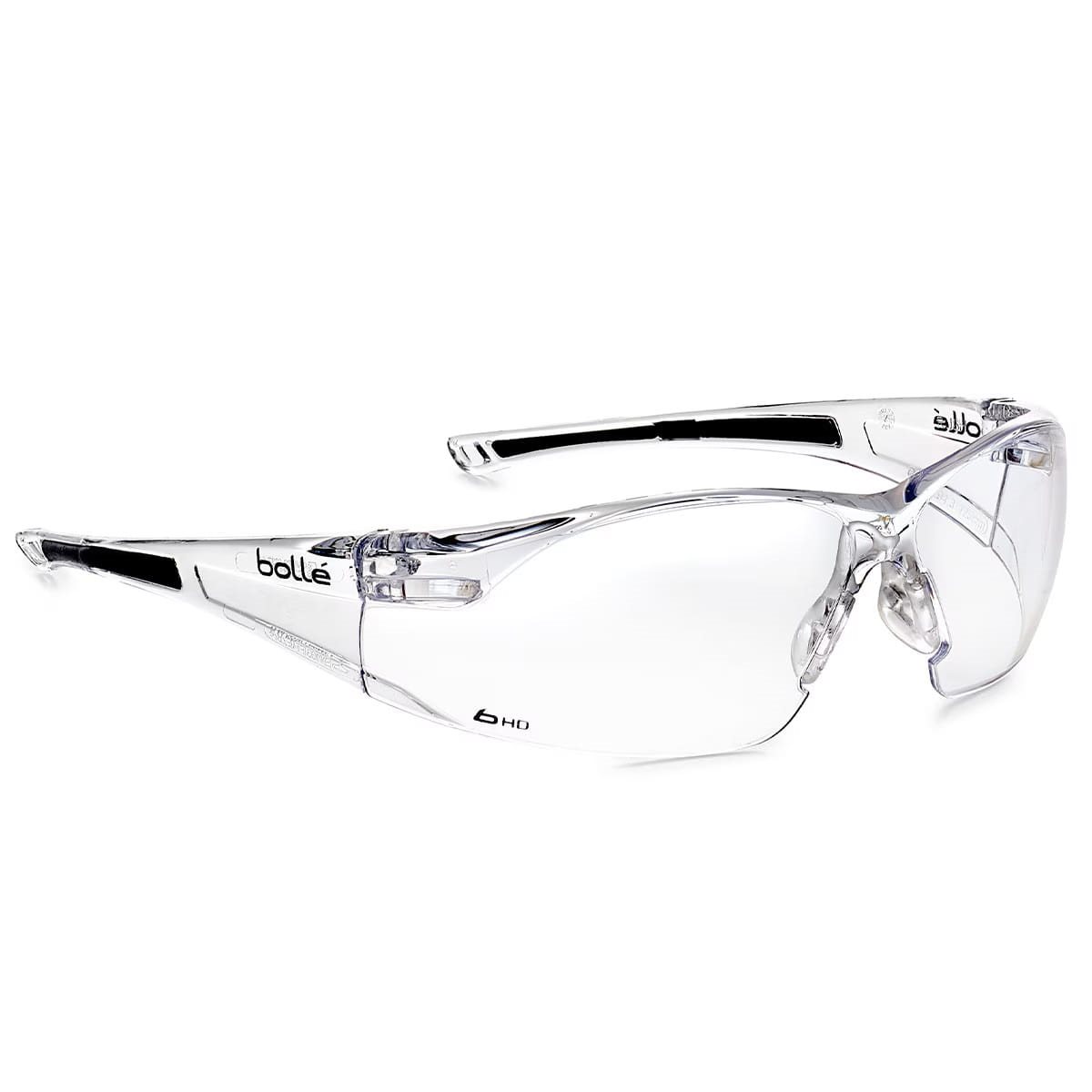 Lunettes légères au look sportif, conçues pour un confort quotidien. Les verres des lunettes sont fabriqués en polycarbonate résistant avec un traitement CSP transparent qui laisse passer environ 96 % de la lumière visible. Les verres HD sont également dotés d'un traitement antireflet et hydrophobe, ainsi que d'une couche anti-rayures, anti-buée et d'une protection contre 99,99 % des rayons UVA et UVB nocifs. La monture des lunettes est fabriquée en PVC résistant et est incurvée de manière à épouser parfaitement votre visage sans perturber votre vision périphérique. Le pont des lunettes est réglable et doté d'un traitement antidérapant. Les lunettes sont conformes aux normes EN166, EN170 et UKCA.