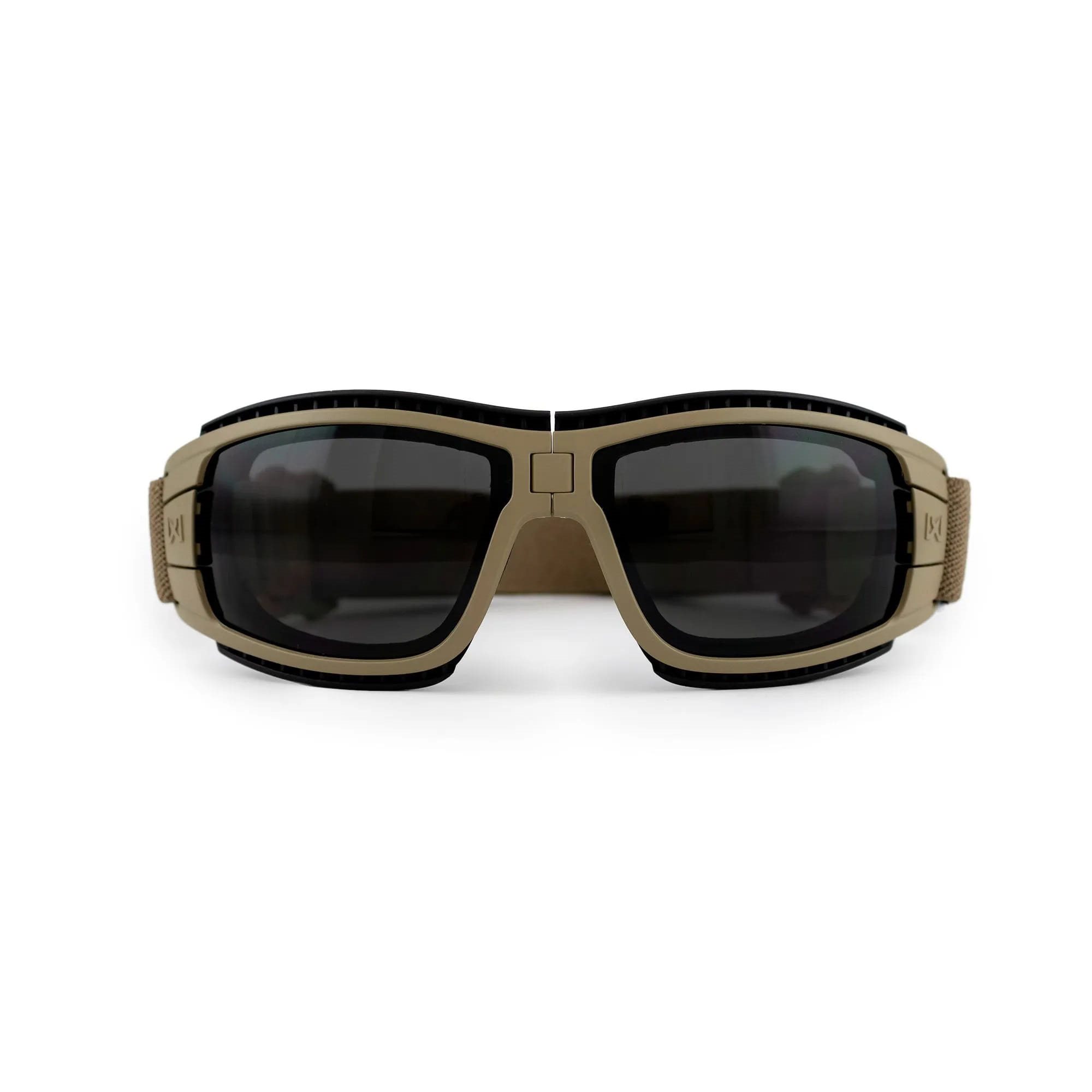 Lunettes tactiques compactes et pliables, idéales pour les parachutistes, les motards et les joueurs d'airsoft. Grâce à leur conception, elles ne prennent pas beaucoup de place et peuvent être facilement transportées. Elles sont livrées avec un étui de transport rigide doté de deux compartiments pour ranger des verres de rechange et d'un joint interne amovible Facial Cavity qui, lorsqu'il est utilisé dans les lunettes, empêche la pénétration de particules irritantes, de poussière, etc. Le bandeau est élastique et, grâce à son réglage en longueur, vous pouvez facilement l'adapter à votre tête. Grâce à leur bandeau fin, ces lunettes sont entièrement compatibles avec la vision nocturne.