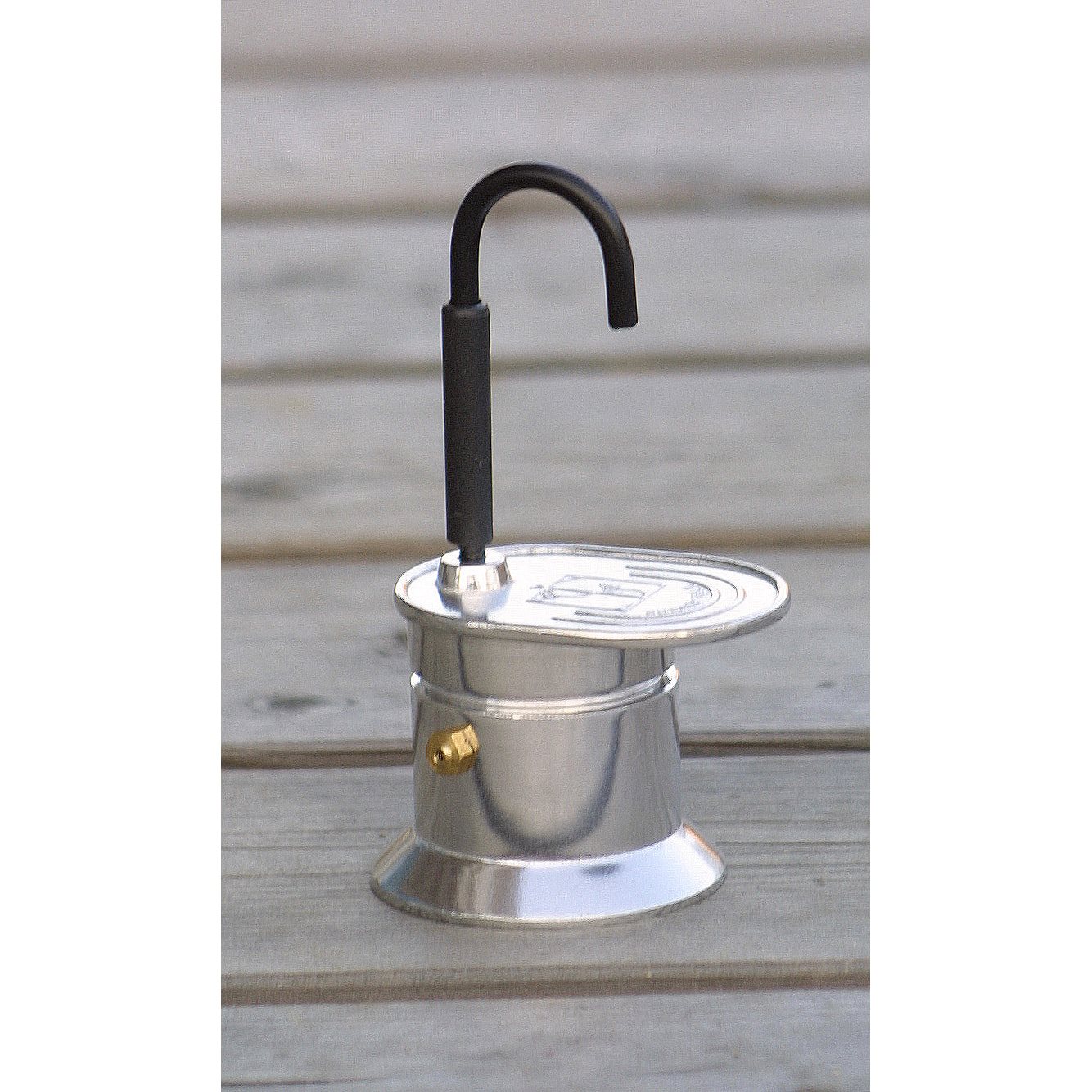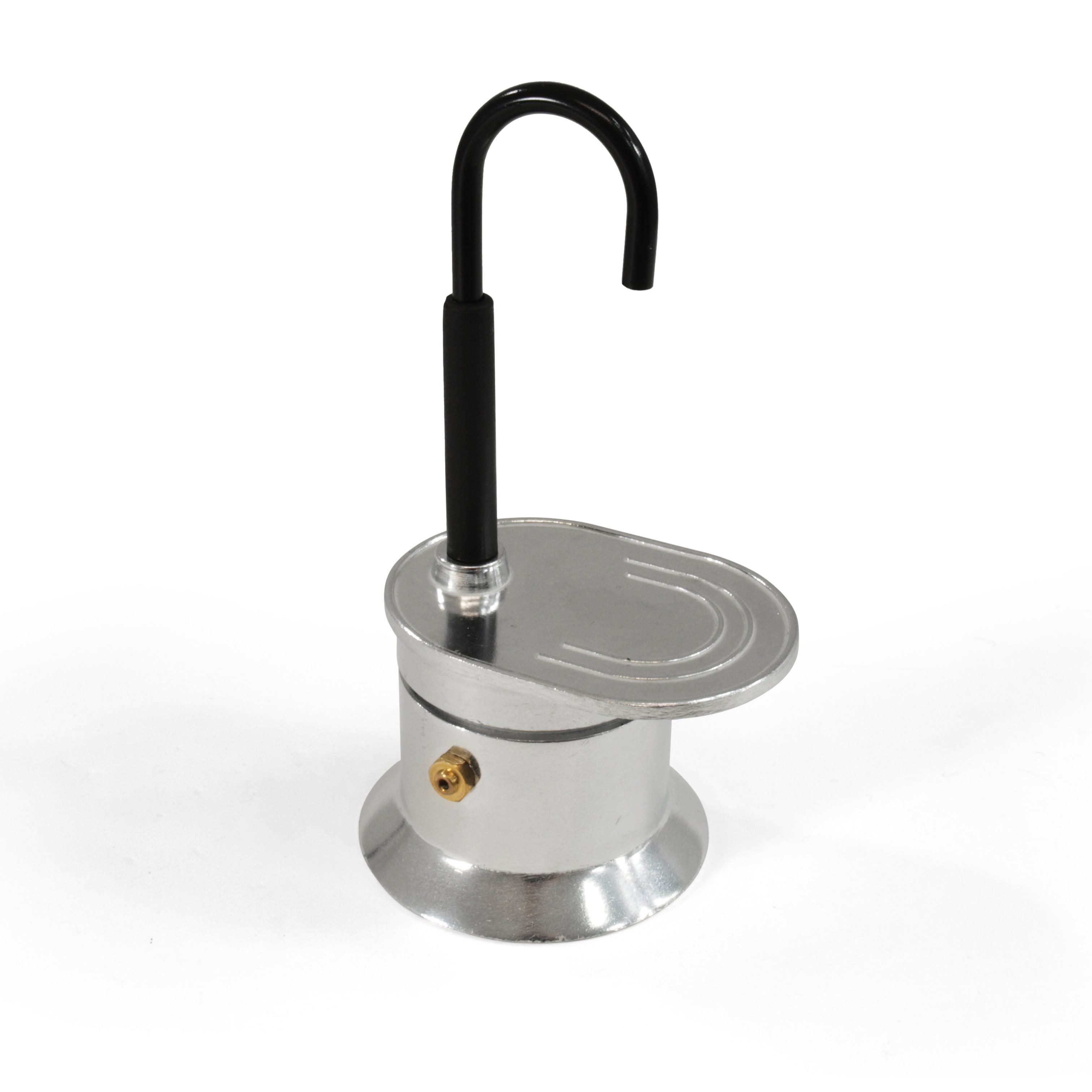Compact - petite cafetière expresso légère qui fonctionne de la même manière qu'une cafetière moka, pour préparer une tasse de café. Dimensions : 7,5 x 9 x 16 cm, poids : 160 g, matériau : aluminium. Plus d'informations