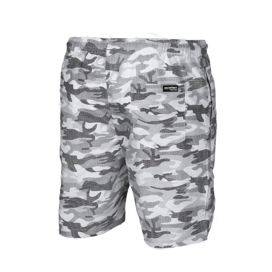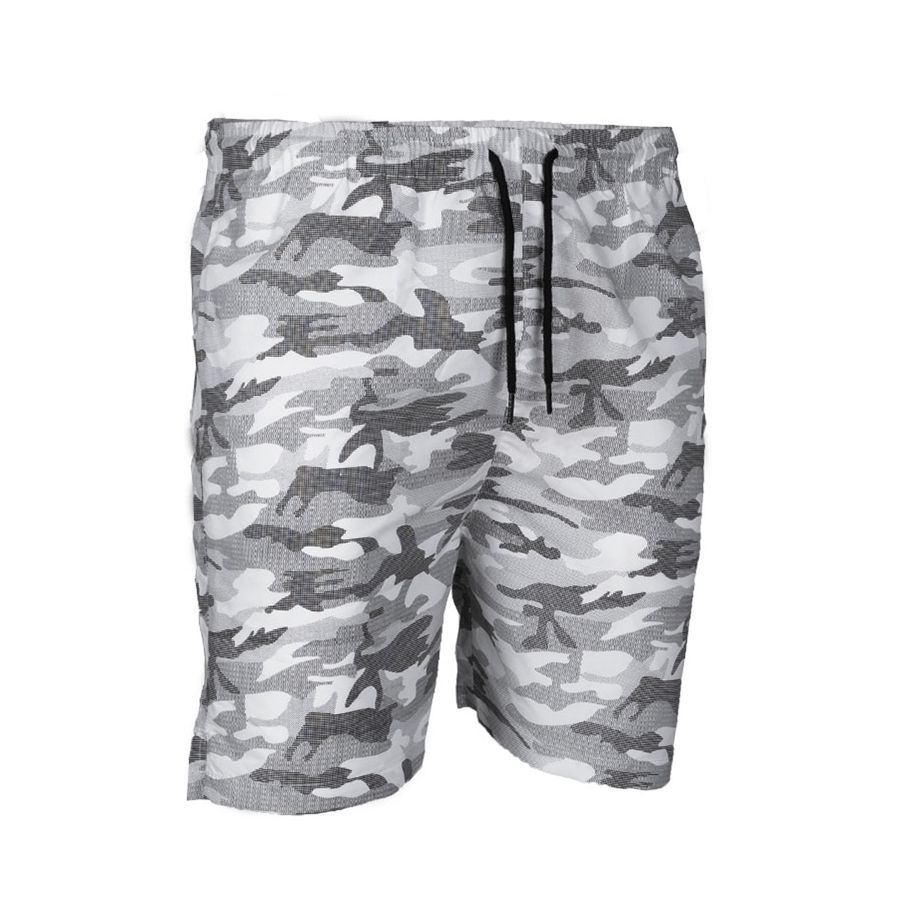 Short de bain confortable en camouflage METRO URBAN. Il est fabriqué en polyester, une matière douce et à séchage rapide. Le short est élastique à la taille et peut être ajusté à l'aide d'un cordon. Deux poches latérales sont disponibles, ainsi qu'une troisième poche à l'arrière. L'intérieur du short est doublé d'une maille confortable et les jambes sont échancrées pour une plus grande liberté de mouvement.