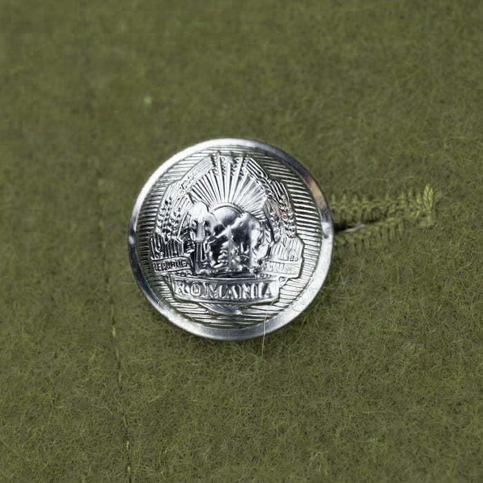 Manteau militaire en laine d'origine avec double boutonnage. Très bon état, provenant des stocks de l'armée roumaine. Plus d'informations