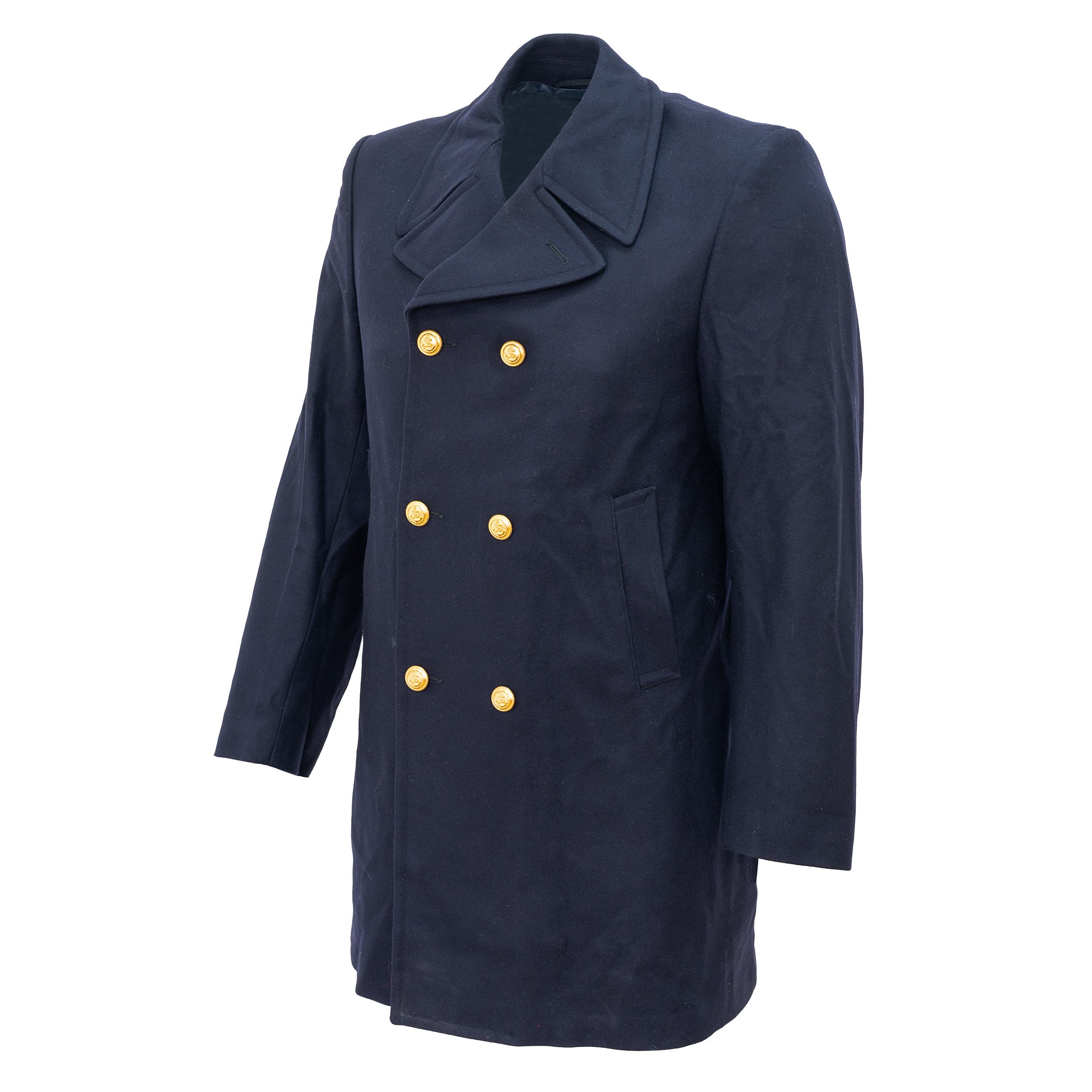 Manteau italien original confectionné en laine épaisse. Il est doté d'une fermeture à double boutonnage avec des boutons dorés.