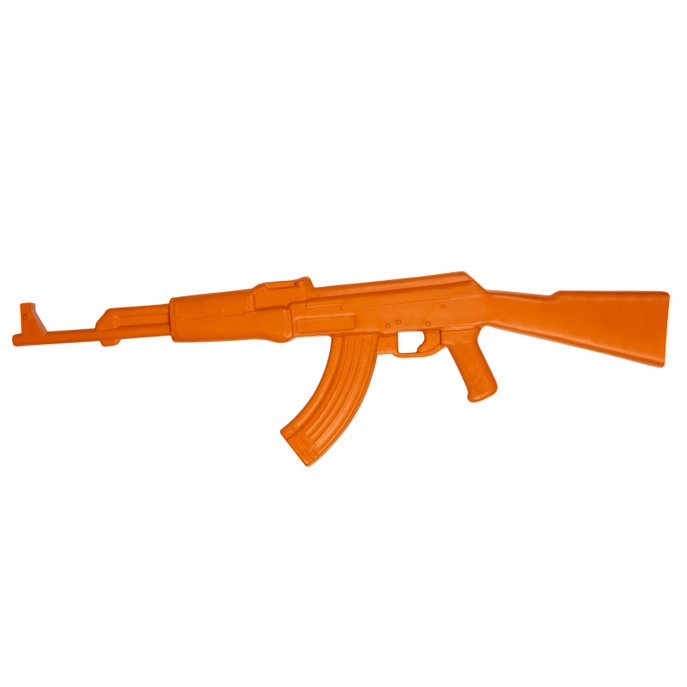 Fusil d'entraînement en caoutchouc, reproduction fidèle du célèbre AK-47. Cette réplique d'entraînement est entièrement en caoutchouc et comporte une armature métallique à l'intérieur, ce qui la rend très stable. Pour un entraînement plus réaliste, le poids de l'arme correspond à celui d'une arme réelle. Longueur du fusil : 85 cm