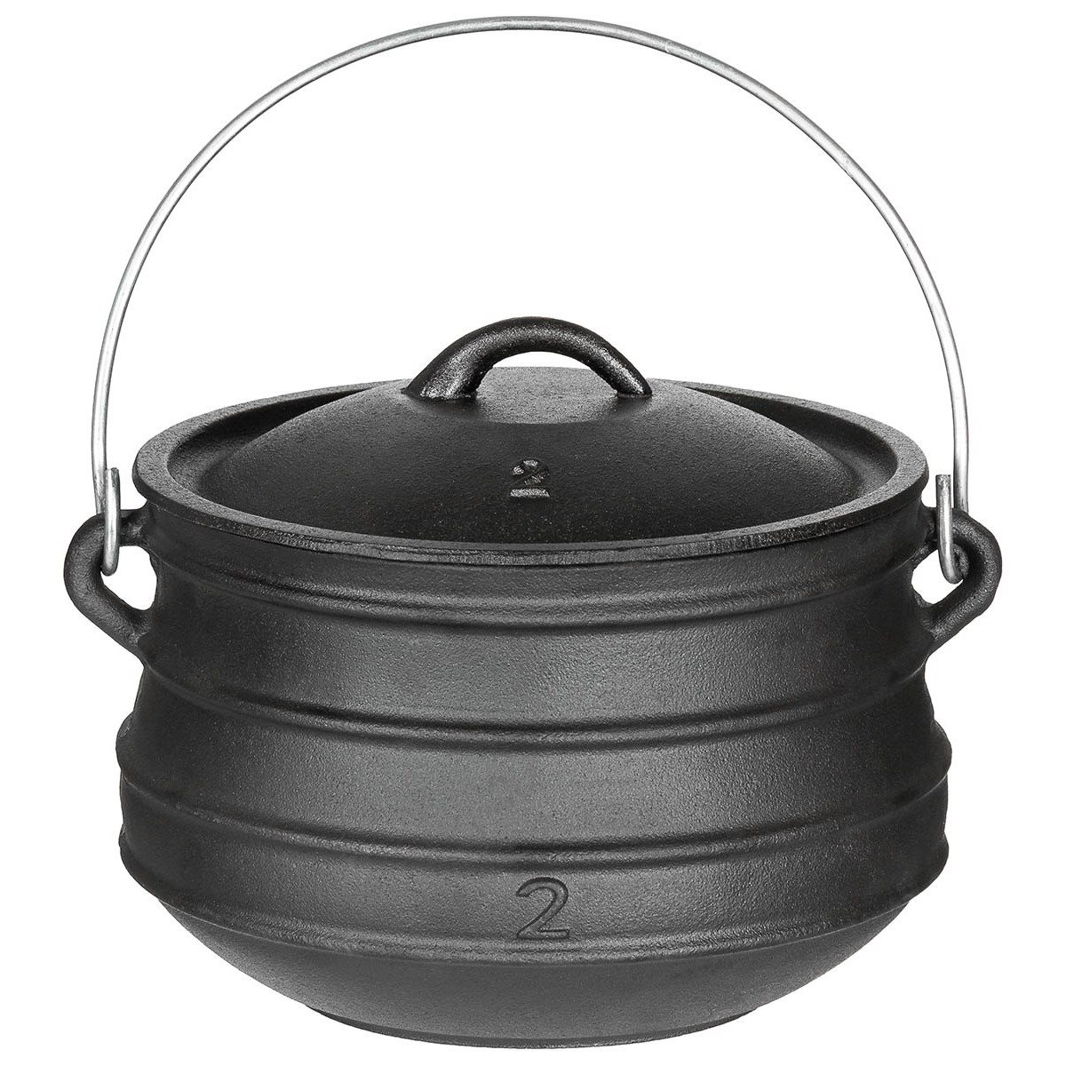 Marmite en fonte adaptée non seulement à la cuisine de campagne. Fonte massive et lourde. Couvercle en fonte inclus.