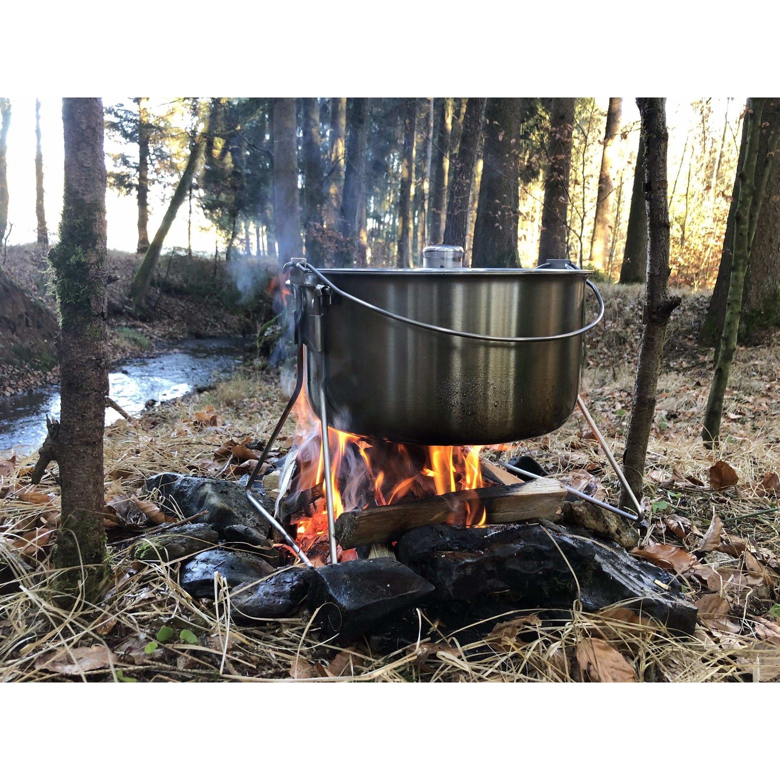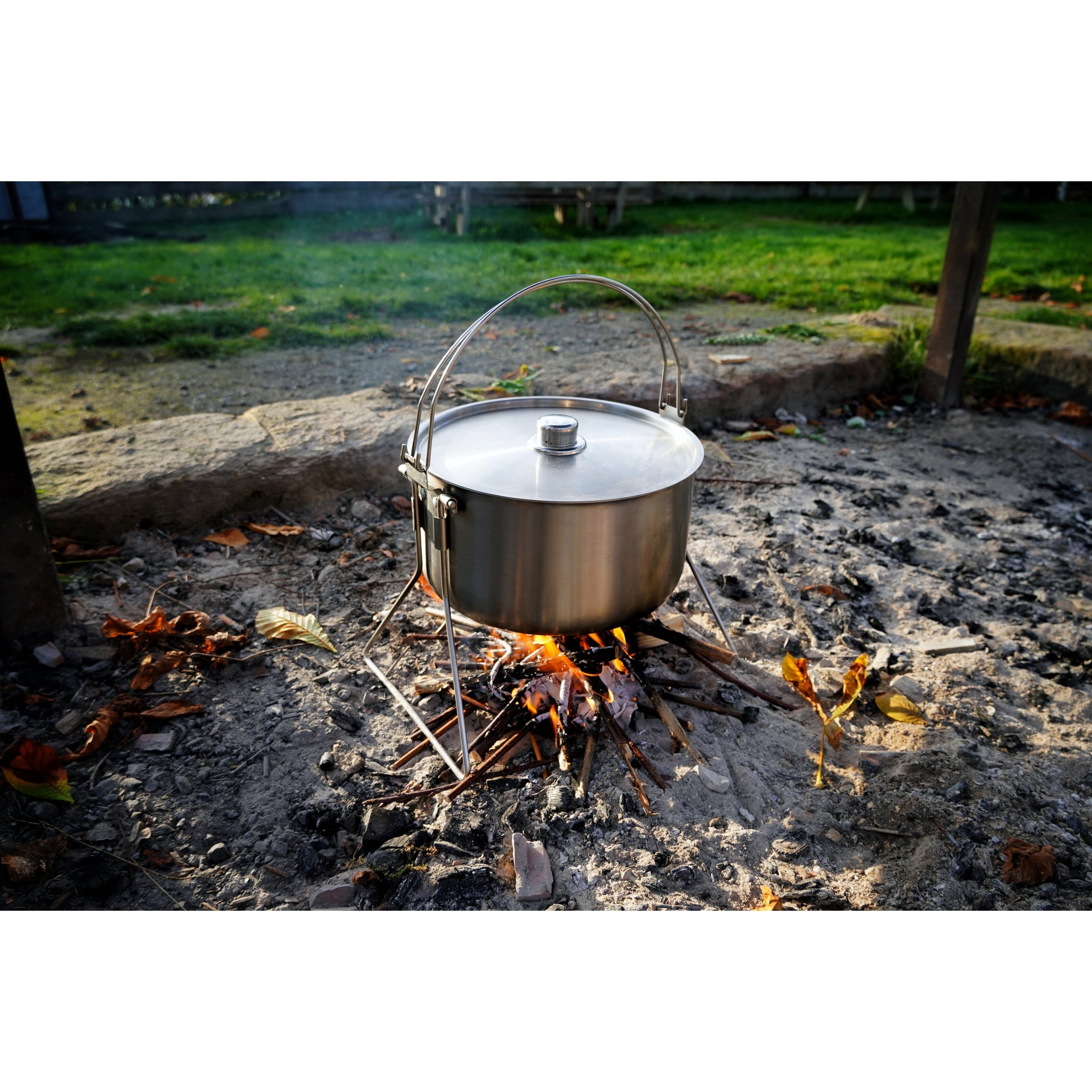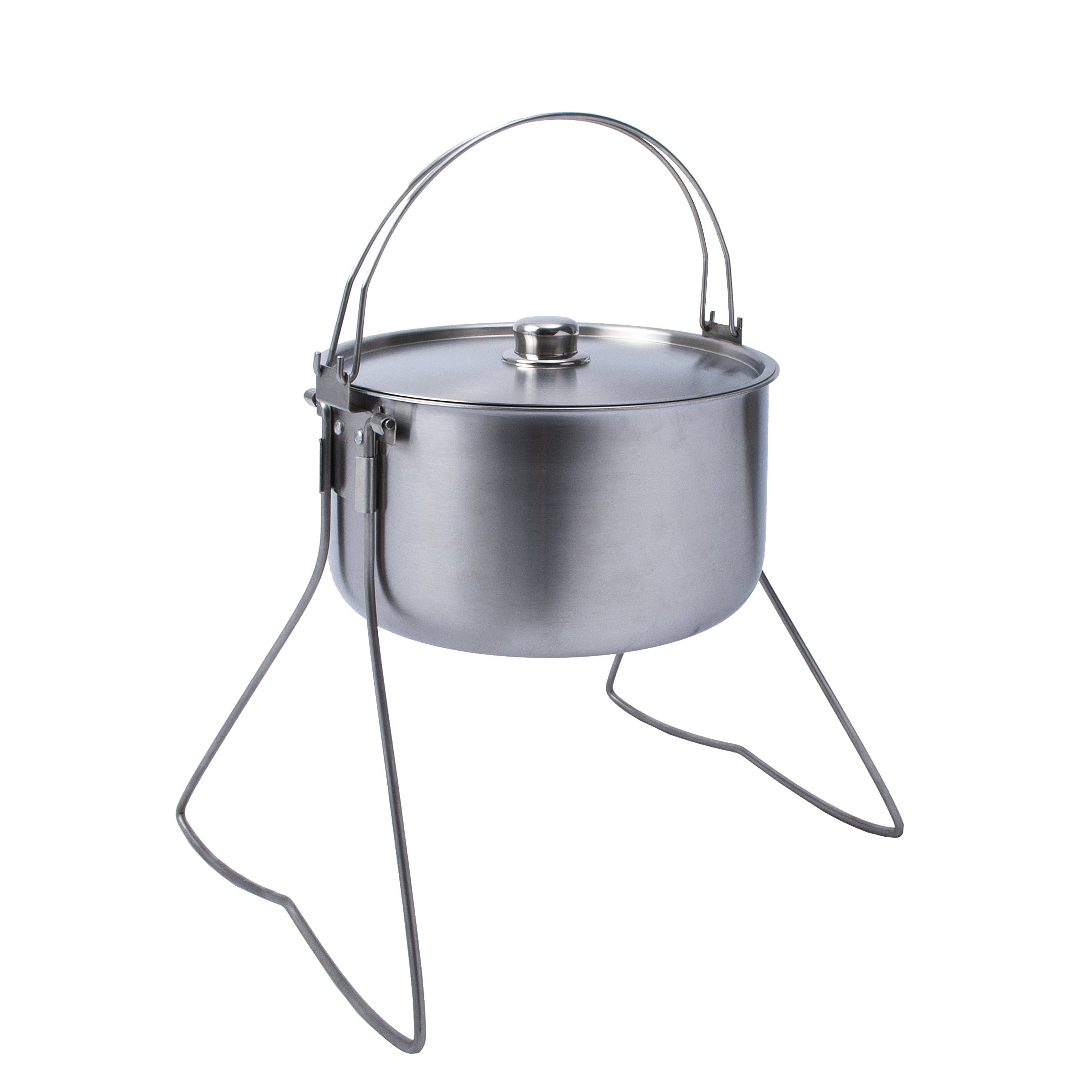 Le chaudron Horde offre un volume suffisant pour un camp de vacances, un bivouac copieux ou une fête dans le jardin. Il est fabriqué en acier inoxydable de haute qualité, tout en étant relativement léger. Deux poignées montées en dehors du centre de gravité assurent une prise en main sûre lors du transport et sur le trépied. La marmite est équipée de pieds fournis et peut être placée sur une cuisinière ou un feu. Elle convient donc à tous les types de cuisson imaginables, de la cuisinière à induction au feu de camp.