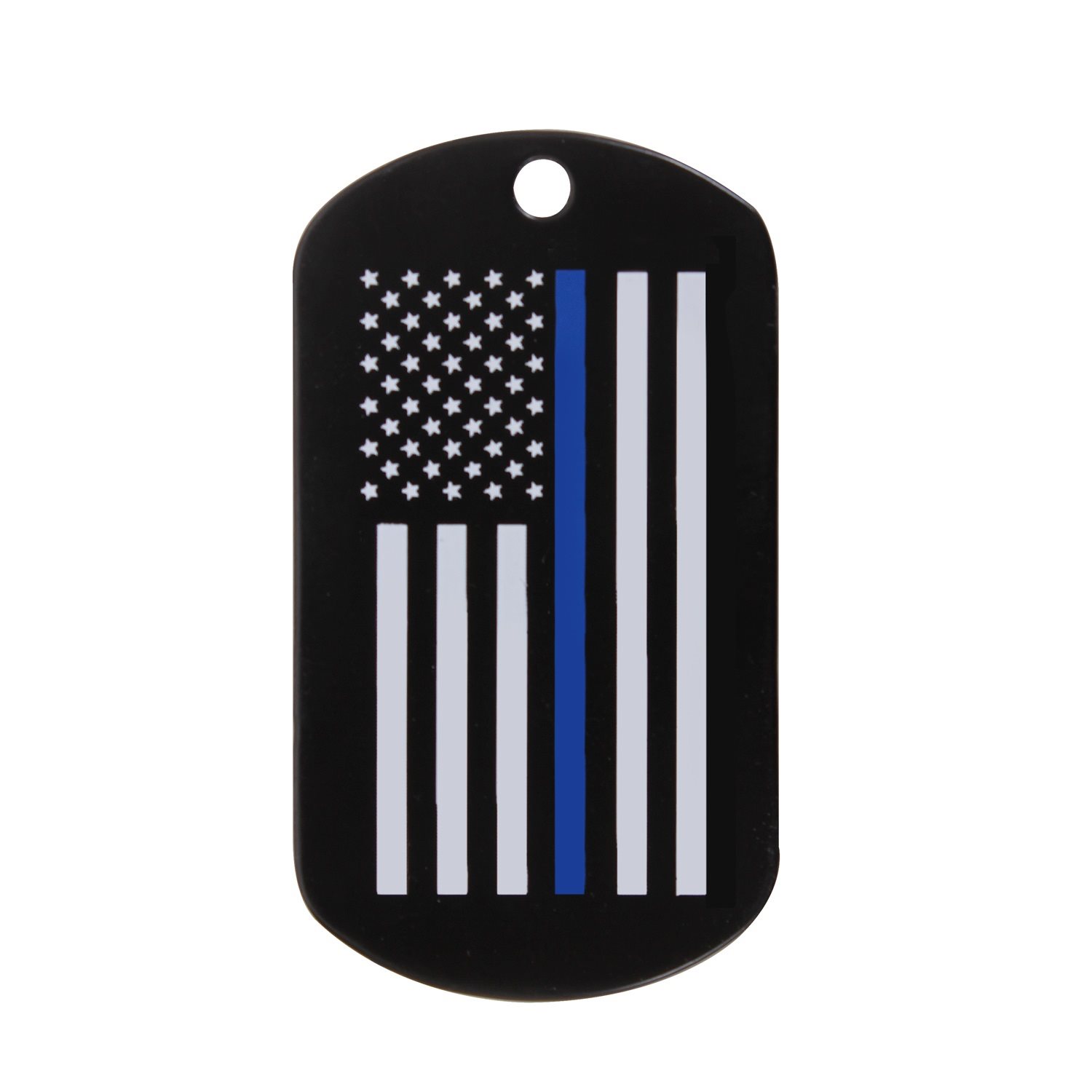 Médaille d'identification (médaille pour chien, dog tag) avec impression du drapeau des États-Unis d'Amérique. Sur le drapeau, une bande bleue remplace l'une des bandes blanches, symbolisant le soutien et le respect envers les membres de la police. Image sur un côté de la médaille. Vous pouvez accrocher la médaille à une chaîne ou l'attacher à un anneau de clés comme pendentif.