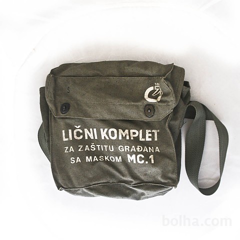 Masque à gaz provenant de Croatie, ou plus précisément de l'ancienne Yougoslavie. (La République socialiste de Croatie faisait partie de la République fédérative socialiste de Yougoslavie entre 1963 et 1990). Le colis comprend un masque, un filtre, une housse de protection et un étui en tissu avec une bandoulière. un filtre, une housse de protection/bâche et une housse en tissu avec une bandoulière. Il s'agit d'un produit neuf, stocké depuis longtemps dans des entrepôts militaires.