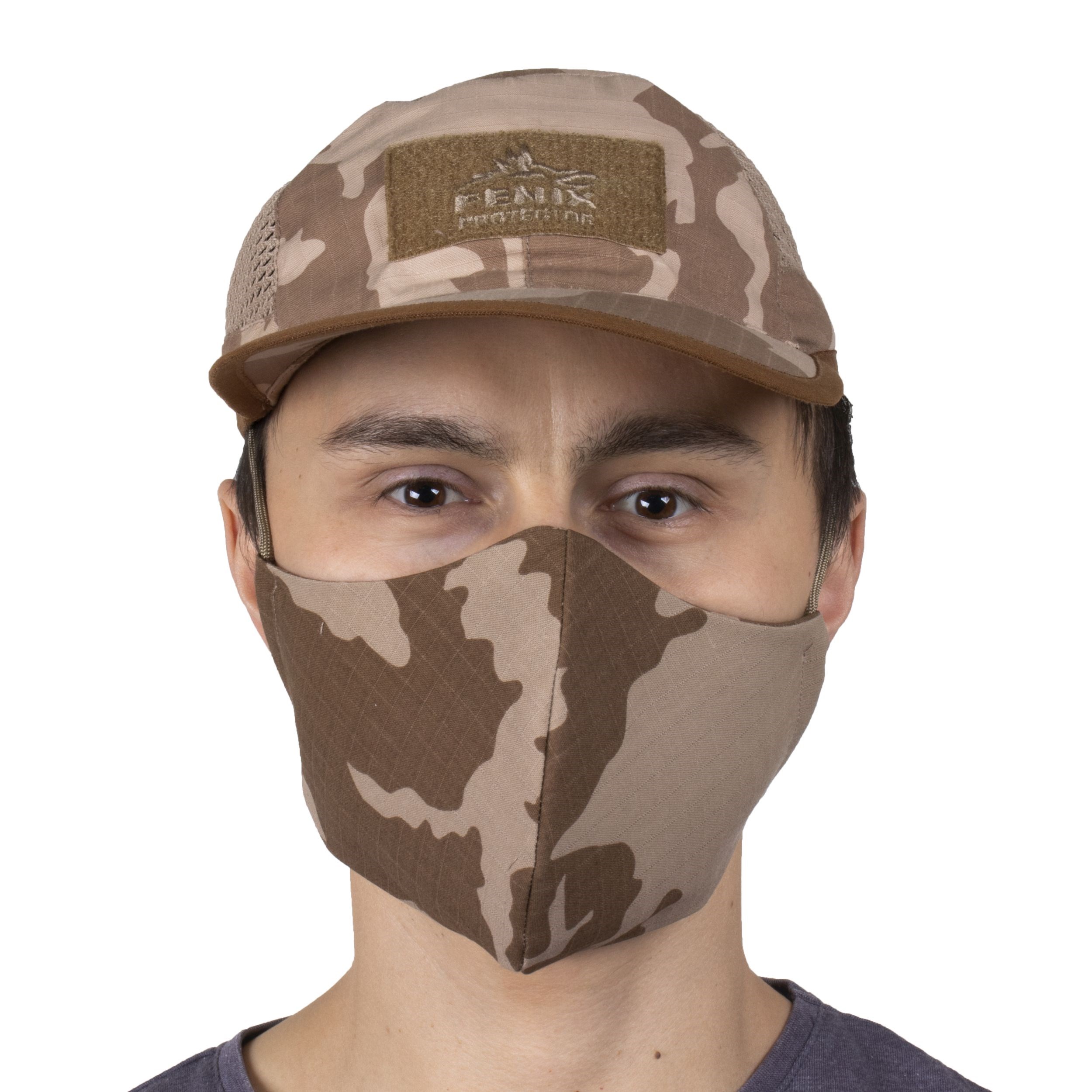 Masque moulé au motif camouflage tchèque 95 DESERT. Il est composé de deux couches de tissu sable original avec finition ripstop. Lavable, bouillable et repassable. Le serrage est assuré par un mètre de cordon parachute complété par un élégant pompon. Il n'est donc pas nécessaire de faire un nœud et l'enlever et le remettre est très rapide. Ce système vous permet également de la suspendre facilement autour du cou.