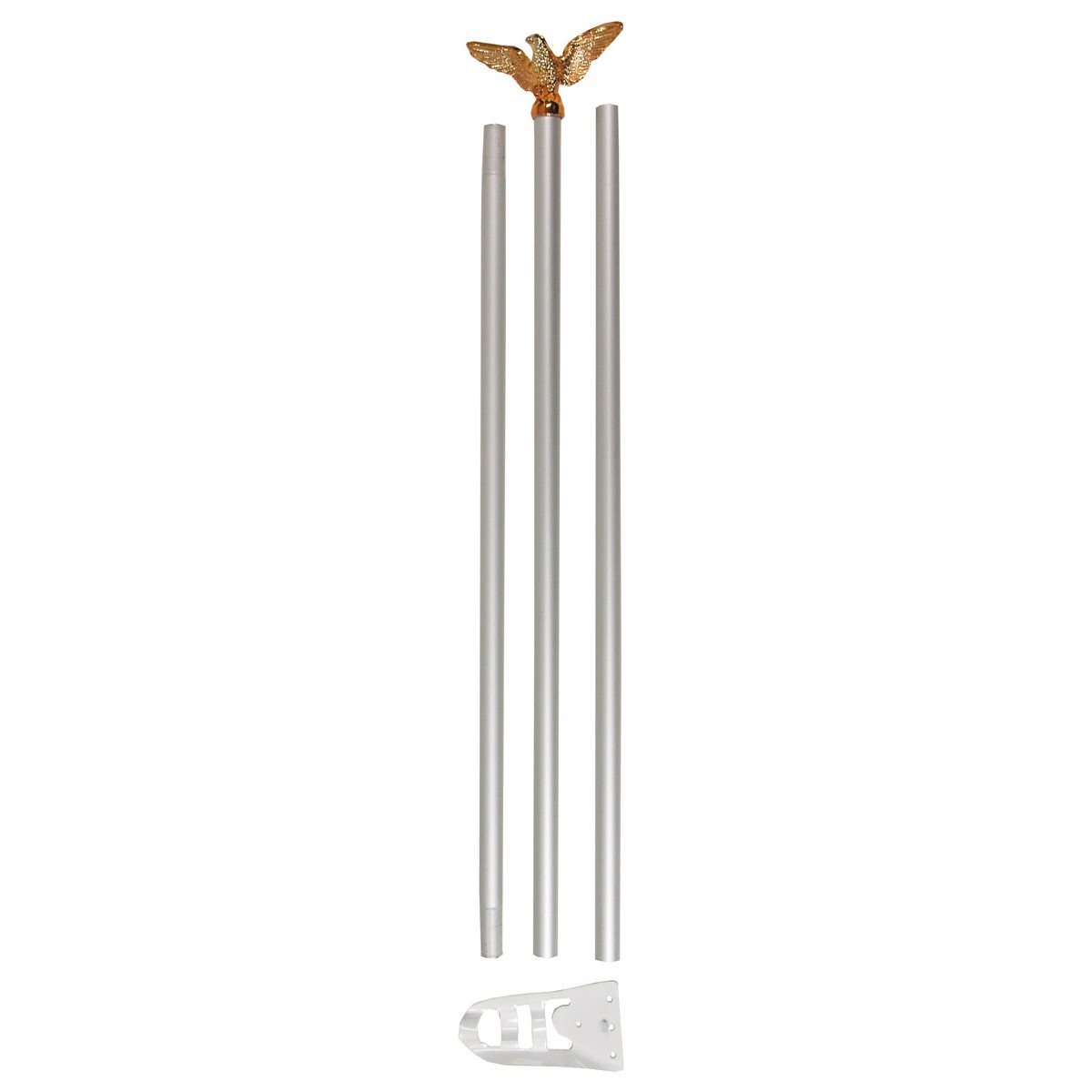 Mât de drapeau pliable en trois parties, surmonté d'un aigle doré. Longueur totale : 180 cm.
