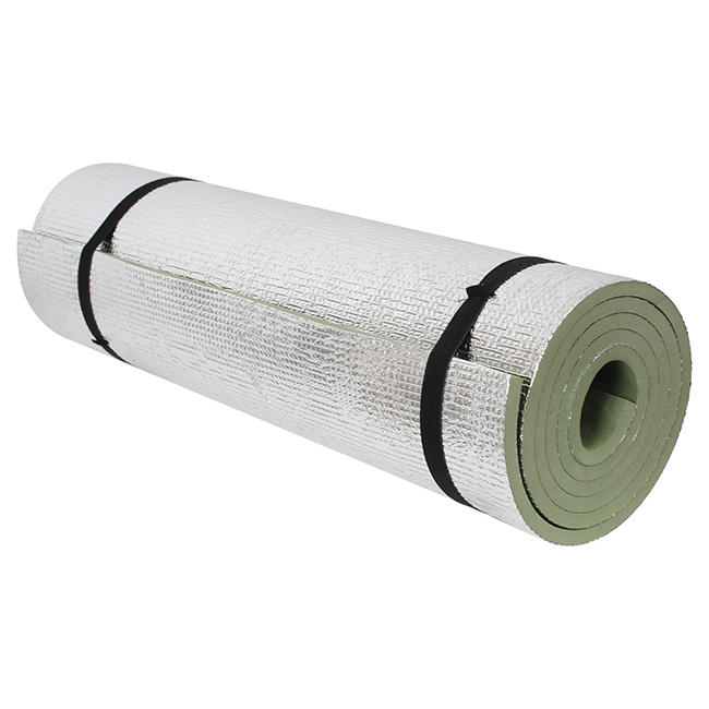 Matelas de sol avec couche isolante inférieure en aluminium. Épaisseur 1 cm, longueur 180 cm, largeur 60 cm. S'il vous plaît noter que les sangles de serrage sont incluses.