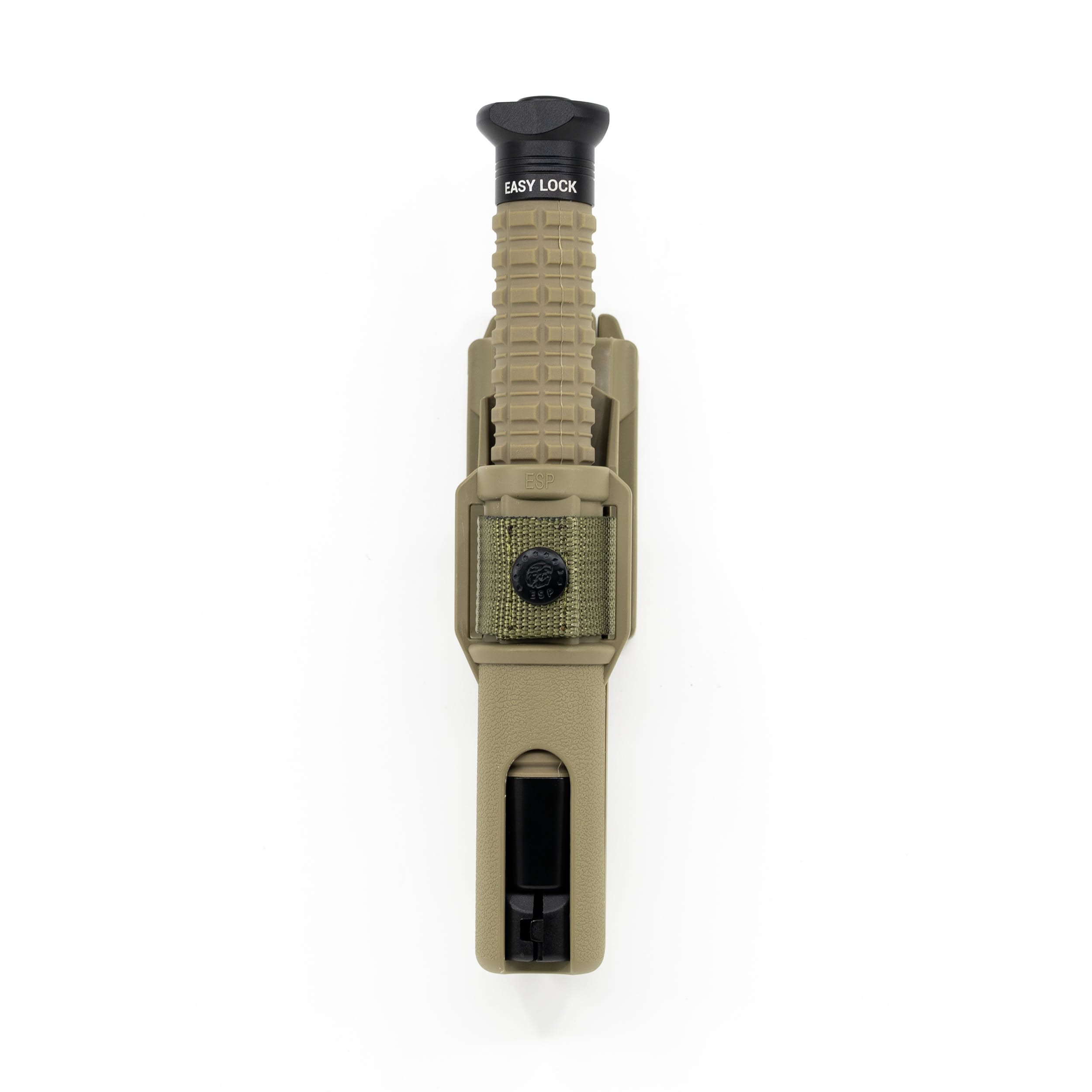 Le meilleur atout de ce bâton est son système de fermeture. En appuyant sur le bouton situé à l'extrémité de la poignée et en appuyant légèrement sur l'extrémité du bâton, le mécanisme de verrouillage se déverrouille. Les tubes se replient alors facilement dans la poignée. Peu importe la force avec laquelle vous ouvrez le bâton, vous le refermerez toujours facilement et sans effort. Vous n'avez même pas besoin de rechercher une surface dure et solide, ce qui est nécessaire pour fermer une matraque télescopique de type Friction Lock.