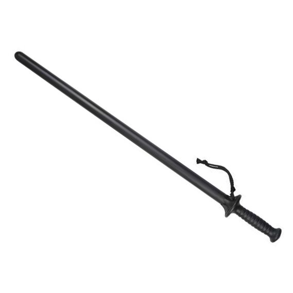 La matraque est fabriquée en polypropylène hautement résistant. Elle est très résistante aux chocs tout en conservant un poids acceptable. Elle est équipée d'un capuchon de protection qui protège efficacement la main contre les chocs. Juste sous le capuchon de protection se trouve un trou permettant d'enfiler la dragonne au poignet.