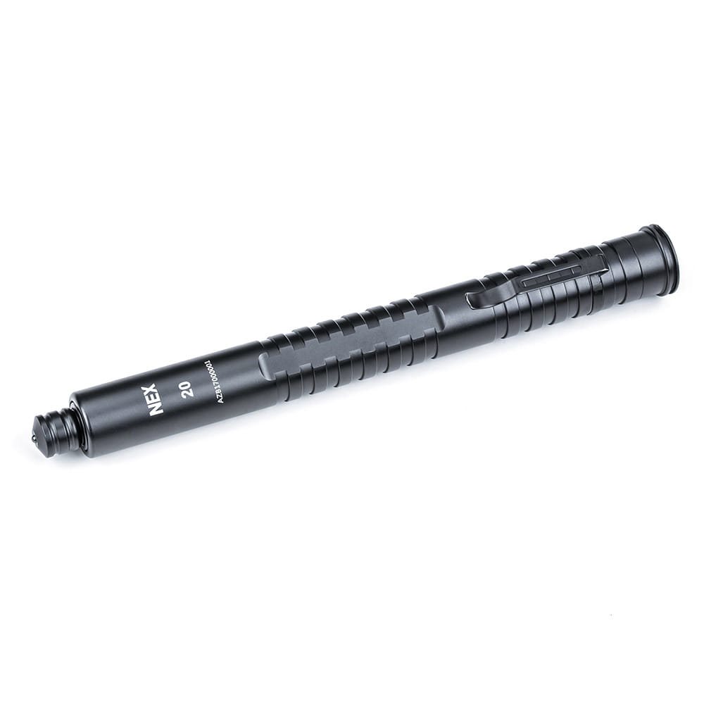 Bâton télescopique extrêmement léger et ultra-compact, doté de boutons permettant une fermeture fluide et facile sans recours à la force brute. Le télescope est fabriqué à partir d'une combinaison d'acier et d'aluminium résistants et, grâce à sa taille, il est parfaitement adapté à un usage quotidien. Un verrou spécial permet de le déployer et de le replier pendant l'autodéfense. À son extrémité, le bâton est équipé d'une pointe nanocéramique spéciale pour briser le verre en toute sécurité en cas d'urgence. Il est bien entendu équipé d'un clip en acier sur la poignée pour pouvoir être facilement attaché à une ceinture, un sac à dos ou tout autre équipement.