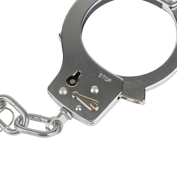 Menottes standard pour les mains. Fournies avec deux clés. Longueur : 27 cm. Plus d'informations