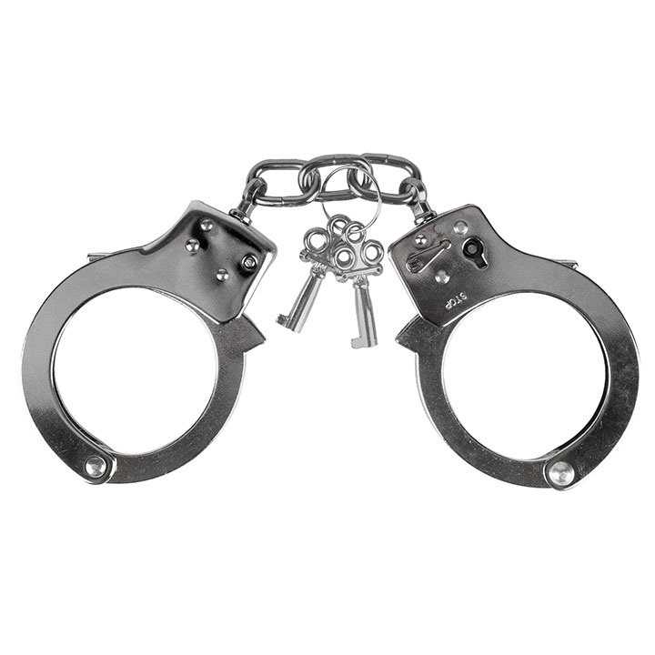 Menottes standard pour les mains. Fournies avec deux clés. Longueur : 27 cm.