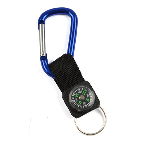 Mousqueton métallique de 5,8 cm avec une petite boussole pratique et un anneau pour les clés. Pour accrocher à un sac à dos, à une boucle de pantalon, etc. Le mousqueton ne doit pas être utilisé pour l'assurage personnel lors de l'escalade. Plus d'informations