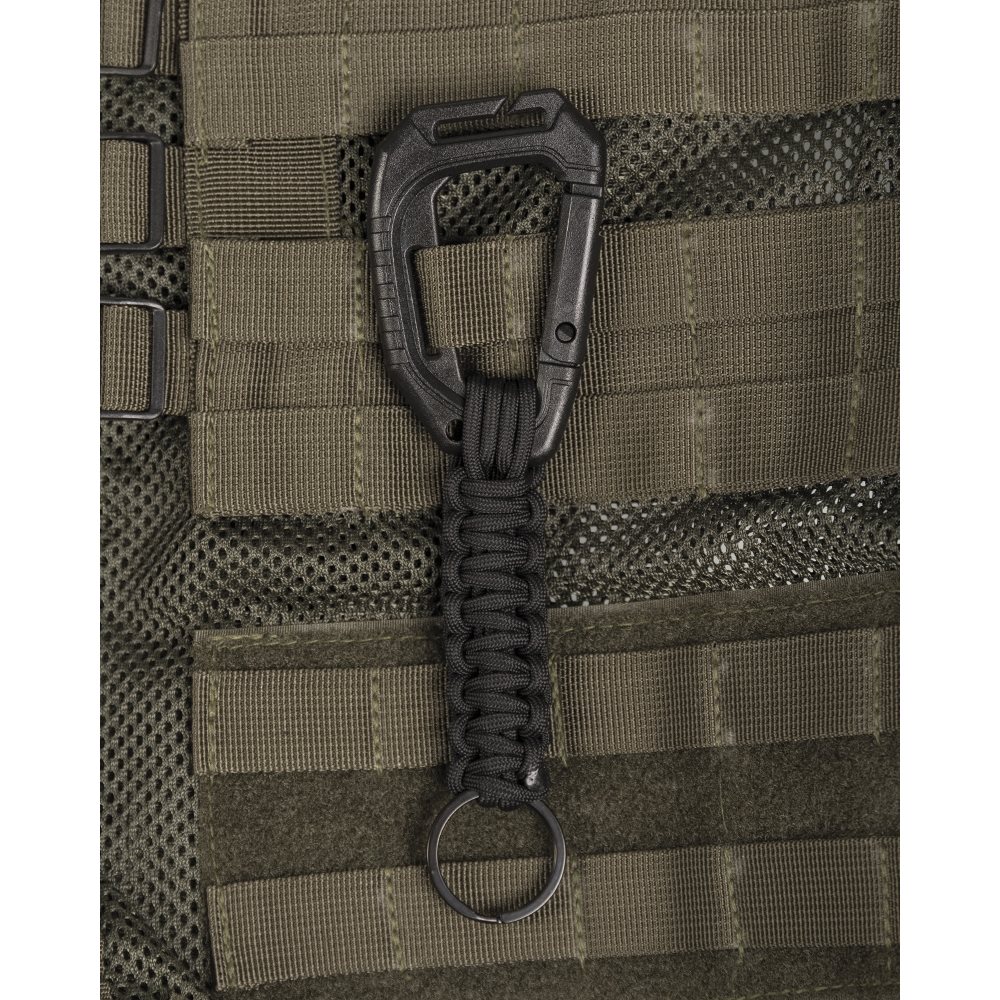 Mousqueton tactique MOLLE en plastique Polyoxyméthylène. Dimensions : 9,3 cm, poids : 24 g. Plus d'informations