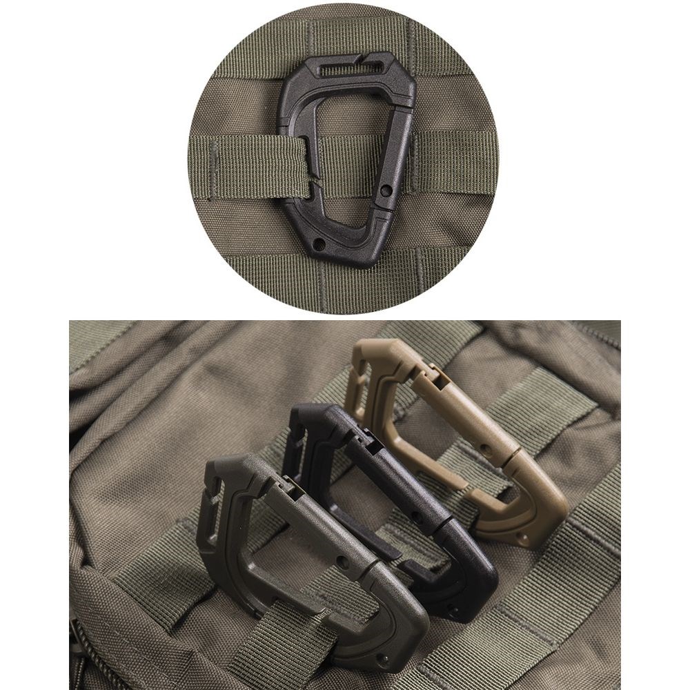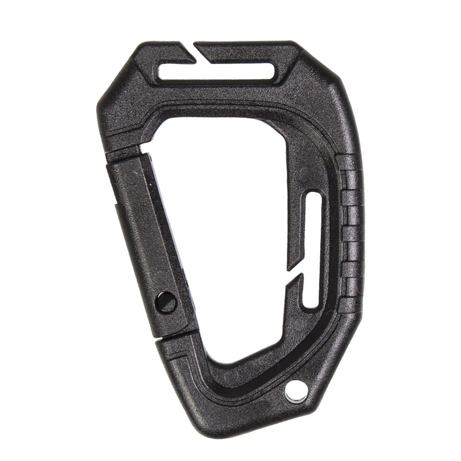 Nouveau modèle de mousqueton tactique MOLLE en plastique polyoxyméthylène. Dimensions : 9,3 cm, poids : 24 g. Lot de 2 pièces.