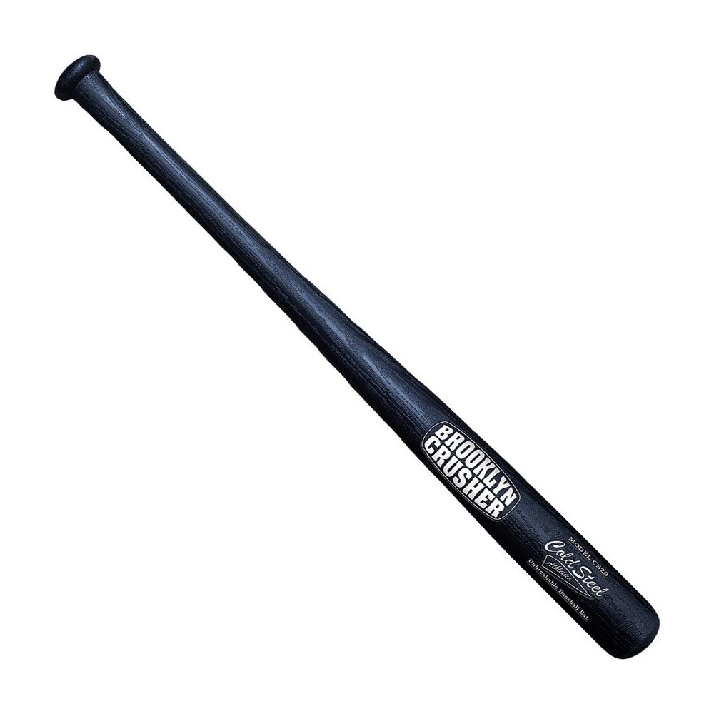 Batte de baseball en polypropylène de 73 cm de long de la marque COLD STEEL. La batte est marquée de l'inscription BROOKLYN Crusher et du logo du fabricant. Au niveau de la poignée, la batte a un diamètre d'environ 2,5 cm, l'épaisseur de la pointe est d'environ 5,4 cm.