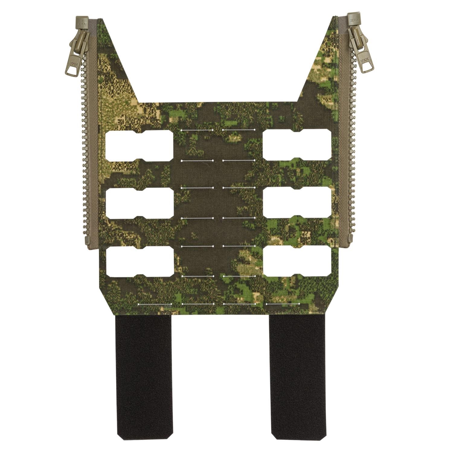 Panneau arrière ultraléger pour les gilets Bearcat et Spitfire, pouvant également être fixé au sac à dos Halifax. Le panneau est fabriqué à partir d'une seule pièce de nylon laminé avec une armature PALS/MOLLE découpée au laser pour la fixation de pochettes compatibles. Il se fixe au gilet à l'aide de fermetures éclair latérales et est maintenu en place par deux sangles à velcro sur la face inférieure.