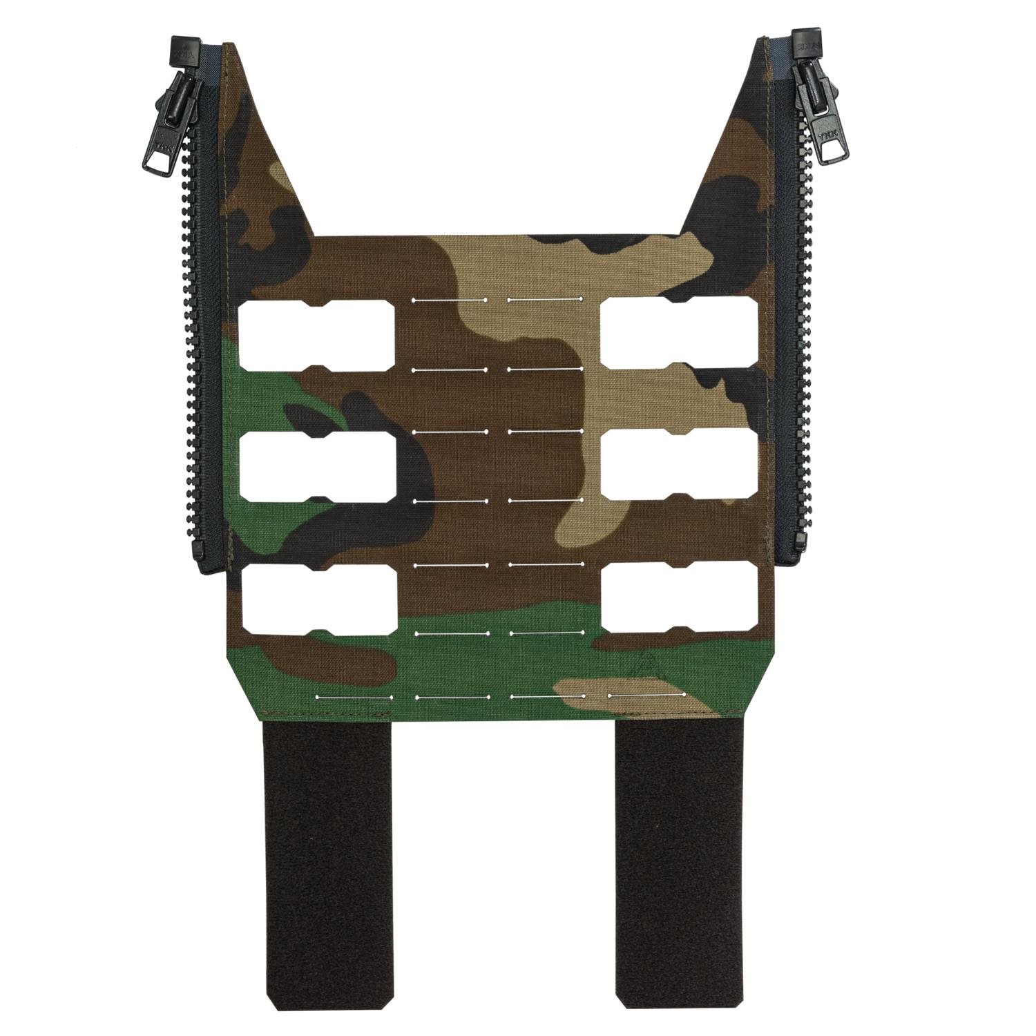 Panneau arrière ultraléger pour les gilets Bearcat et Spitfire, pouvant également être fixé au sac à dos Halifax. Le panneau est fabriqué à partir d'une seule pièce de nylon laminé avec une armature PALS/MOLLE découpée au laser pour la fixation de pochettes compatibles. Il se fixe au gilet à l'aide de fermetures éclair latérales et est maintenu en place par deux sangles à velcro sur la face inférieure.