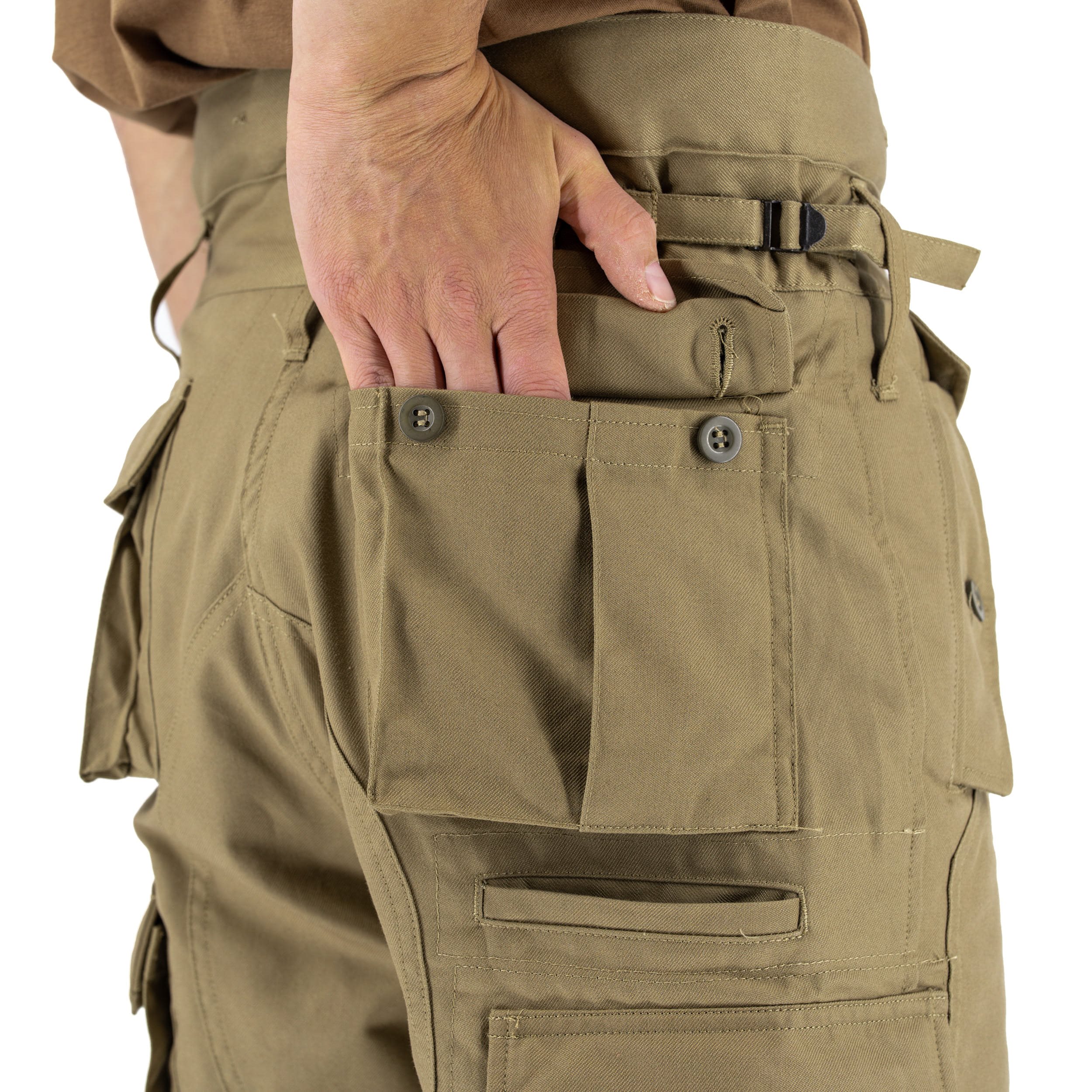 Pantalon original de coupe 95 dans la couleur populaire « COYOTE ». Il s'agit d'une nouvelle production conforme aux spécifications techniques du pantalon original modèle 95. Tous les pantalons sont neufs et inutilisés, fabriqués selon les normes de qualité militaire. Le fabricant est la société TROPNER.