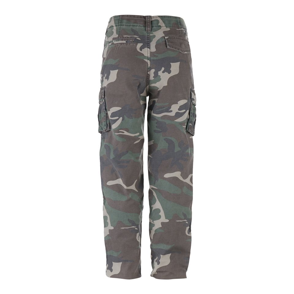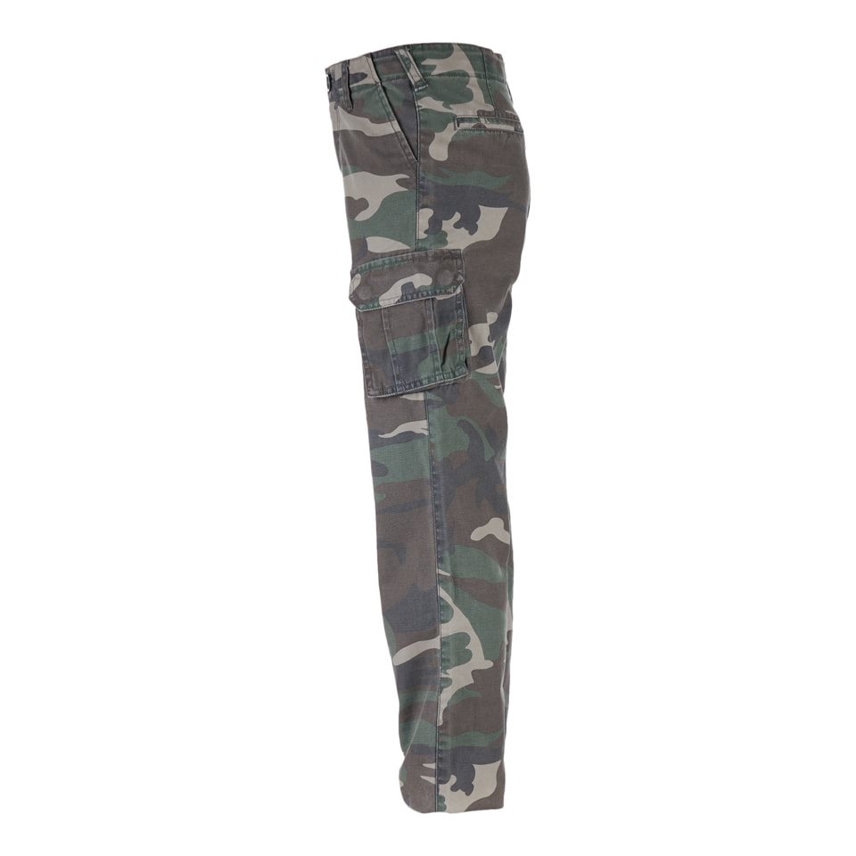 La fermeture du pantalon est assurée par un bouton et une fermeture éclair métallique. Les poches pour les mains ont des entrées en biais. Vous trouverez deux grandes poches cargo sur les cuisses. La dernière poche se trouve à l'arrière du pantalon. Elle est assez profonde et recouverte d'un rabat avec un bouton-pression.