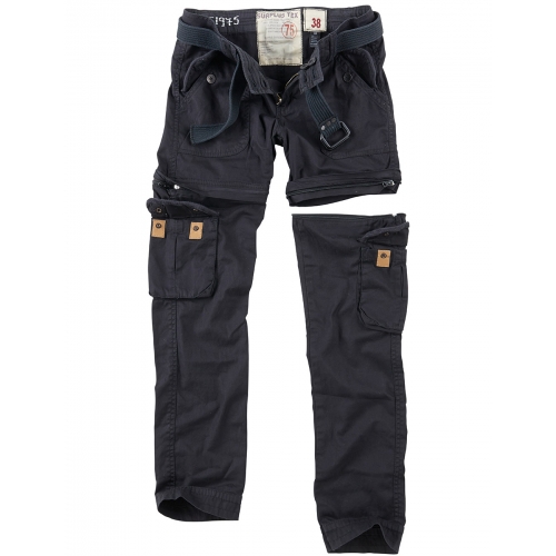 Modèle pour femmes avec une coupe étroite des jambes, selon les tendances modernes. De la société allemande Surplus. Une fermeture éclair permet de transformer ce pantalon en un short féminin élégant.