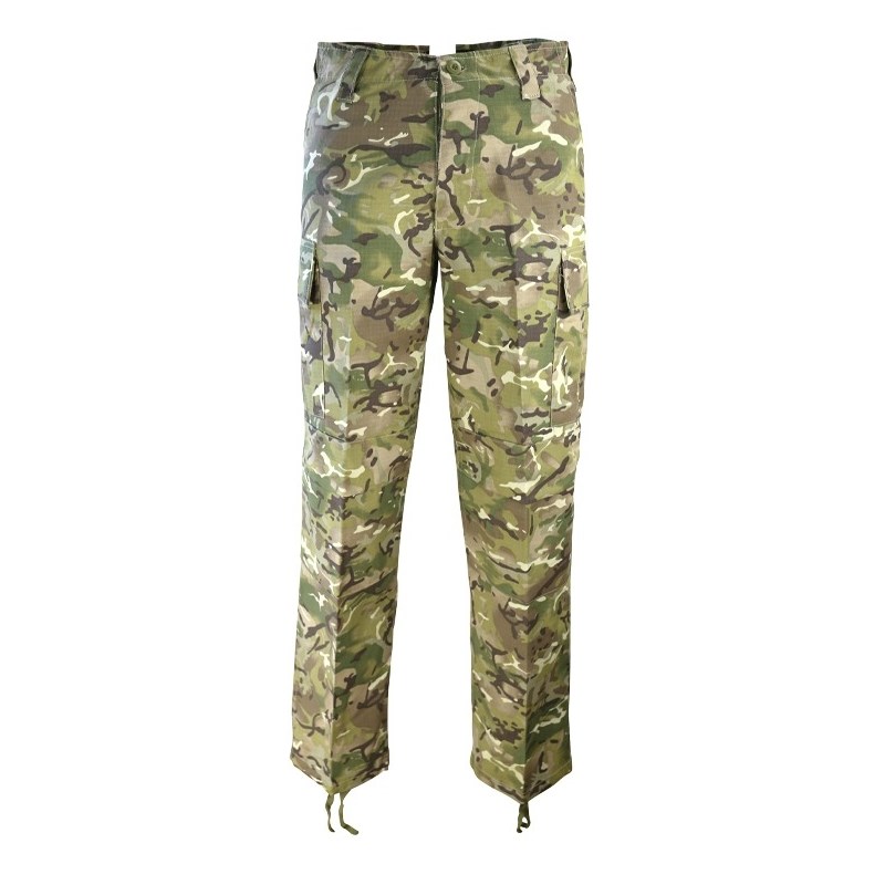 Pantalon résistant de coupe classique M65. Il se ferme à l'aide de boutons et dispose de six poches au total. Les ourlets des jambes sont réglables à l'aide de cordons.