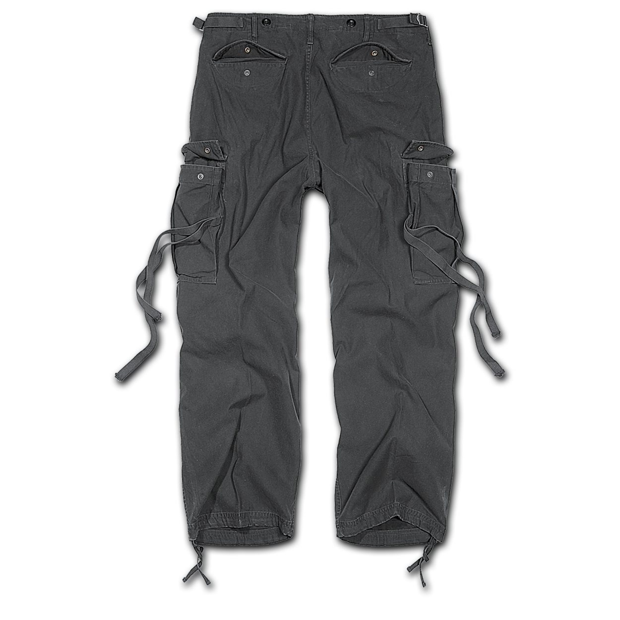 Pantalon très confortable de coupe ample de la marque Brandit, destiné aux loisirs. Ce pantalon s'inspire du modèle éprouvé et très apprécié depuis longtemps des pantalons militaires de l'armée américaine. Les pinces au niveau des genoux permettent de bouger confortablement même pendant une activité physique intense. Le pantalon dispose de six poches au total. Deux poches classiques en biais pour les mains se trouvent à gauche et à droite de la braguette. Elles ont des bords renforcés, ce qui les rend idéales pour y glisser un couteau. Deux autres poches se trouvent sur les cuisses. Ces poches sont de type « cargo », elles offrent donc un grand volume utile. La dernière paire de poches se trouve sur les fesses et est idéale pour y glisser un téléphone ou un portefeuille. Conformément à la coupe originale, les poches arrière et cargo sont recouvertes de rabats fermés par des boutons-pression. Le pantalon peut accueillir des ceintures d'une largeur maximale de 40 mm et présente une finition « vintage » qui imite parfaitement l'aspect délavé.
