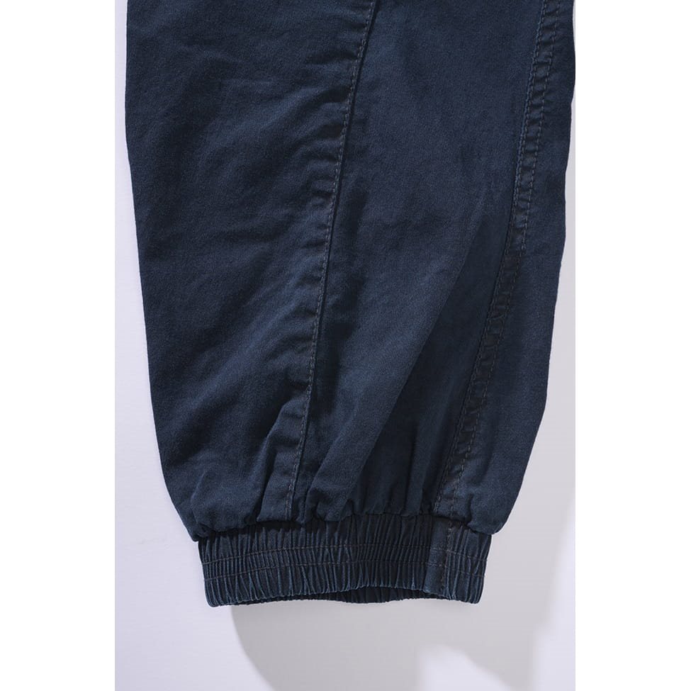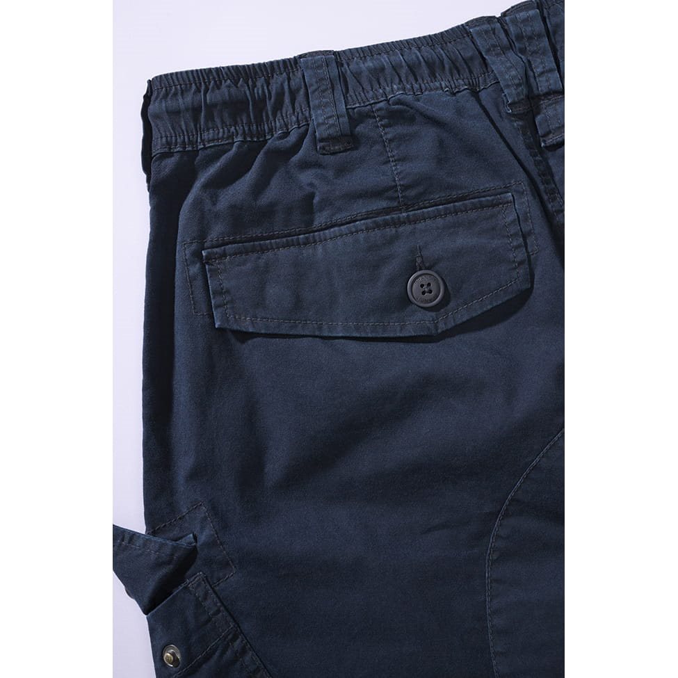 Pantalon d'été confortable à coupe slim. Il est confectionné dans un tissu en coton léger, enrichi de fibres d'élasthanne pour plus de confort lors des mouvements dynamiques. La taille est élastique et peut être ajustée à l'aide d'un cordon. Fermeture à bouton et fermeture éclair. Les poches pour les mains sont suffisamment spacieuses pour y ranger un portefeuille ou des documents. Les poches cargo sur les cuisses sont dotées d'un rabat fermé par un bouton. Les deux dernières poches se trouvent à l'arrière du pantalon et sont également fermées par un rabat avec un bouton. L'assise du pantalon est renforcée par une double épaisseur de tissu. Les jambes du pantalon sont terminées par un ourlet élastique.