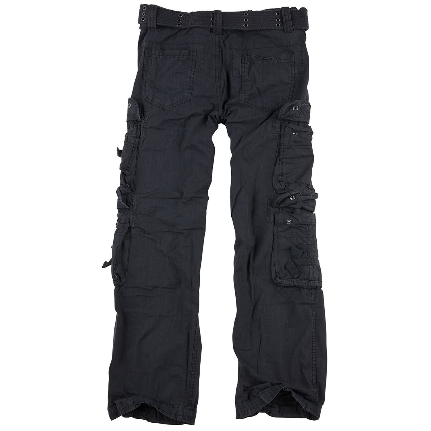 Pantalon élégant en coton confortable, conçu pour un usage quotidien. Ils se ferment à l'aide d'une combinaison classique de bouton et de fermeture éclair, et sont dotés d'une bande de serrage sur les côtés de la taille permettant d'ajuster le tour de taille. Les pantalons sont également livrés avec une large ceinture en tissu au look « vintage » (aspect délavé). À la taille, vous trouverez deux poches classiques pour les mains, qui sont équipées à l'extérieur de petites poches fermées par des fermetures éclair. Au niveau des cuisses, vous trouverez quatre autres poches spacieuses, qui se ferment par des rabats à boutons-pression. Les deux dernières poches se trouvent sur les fesses. Le bas des jambes est renforcé par une double épaisseur de tissu pour une meilleure résistance.